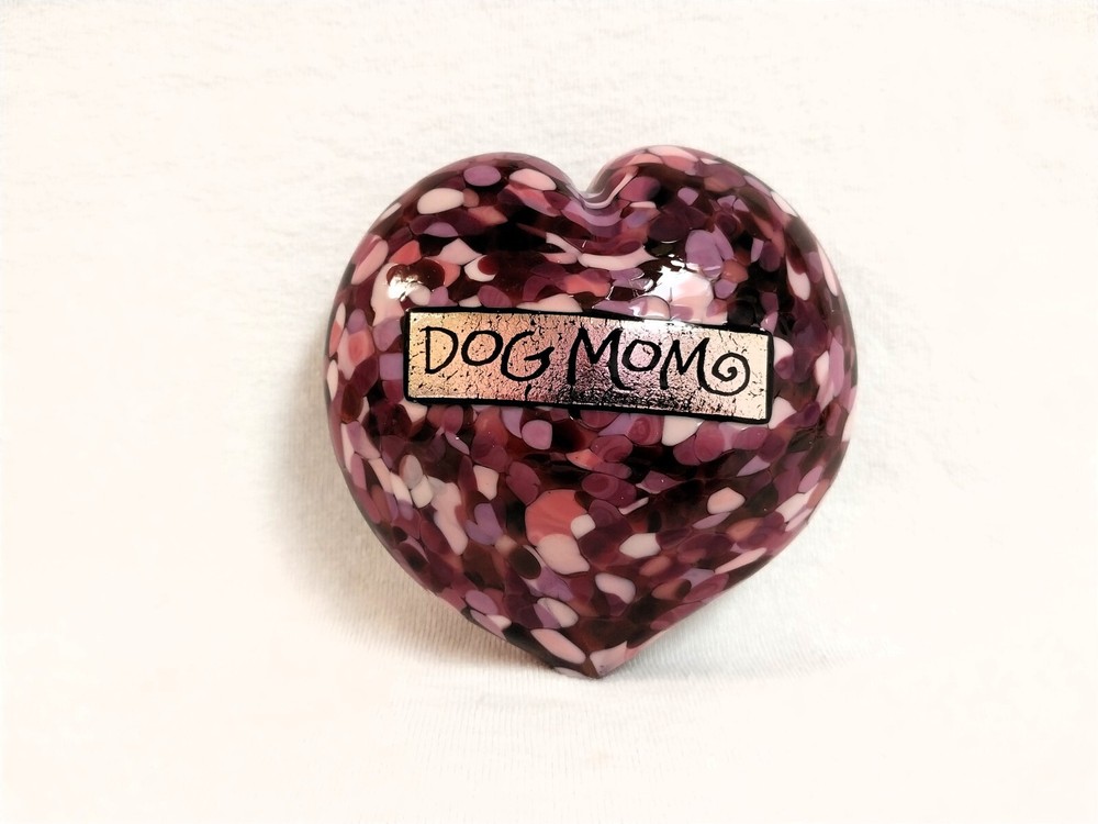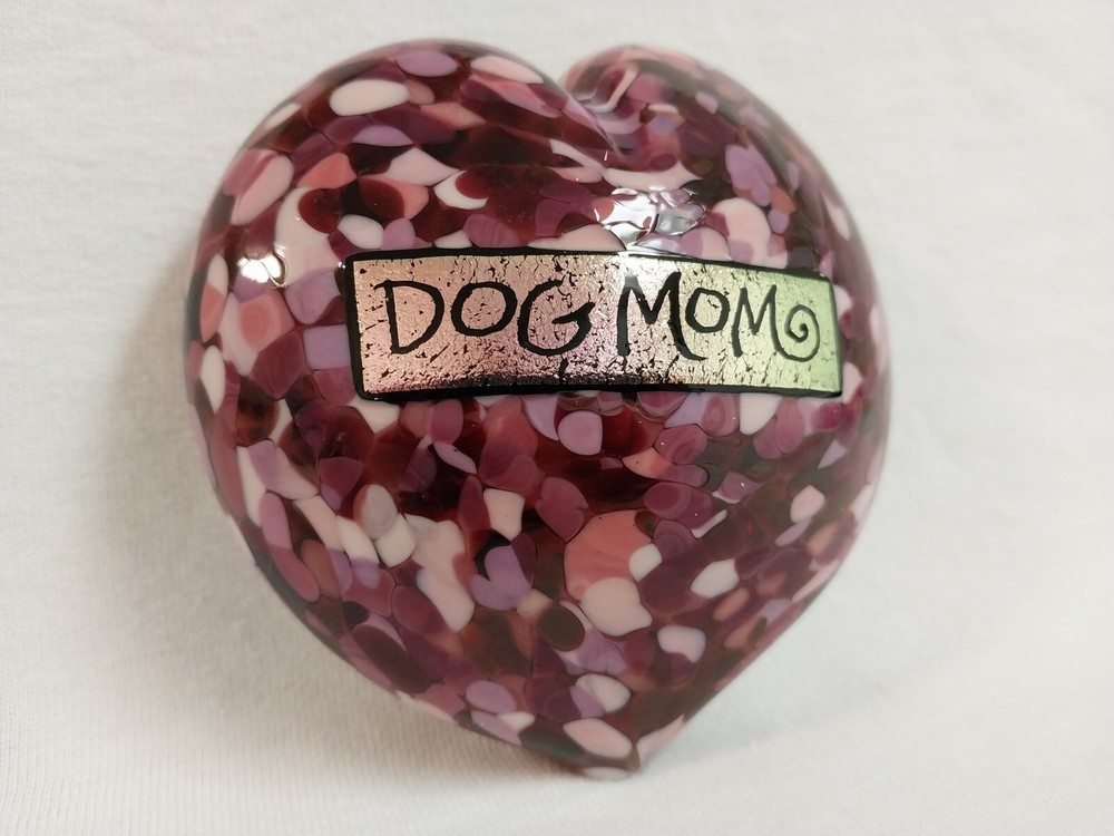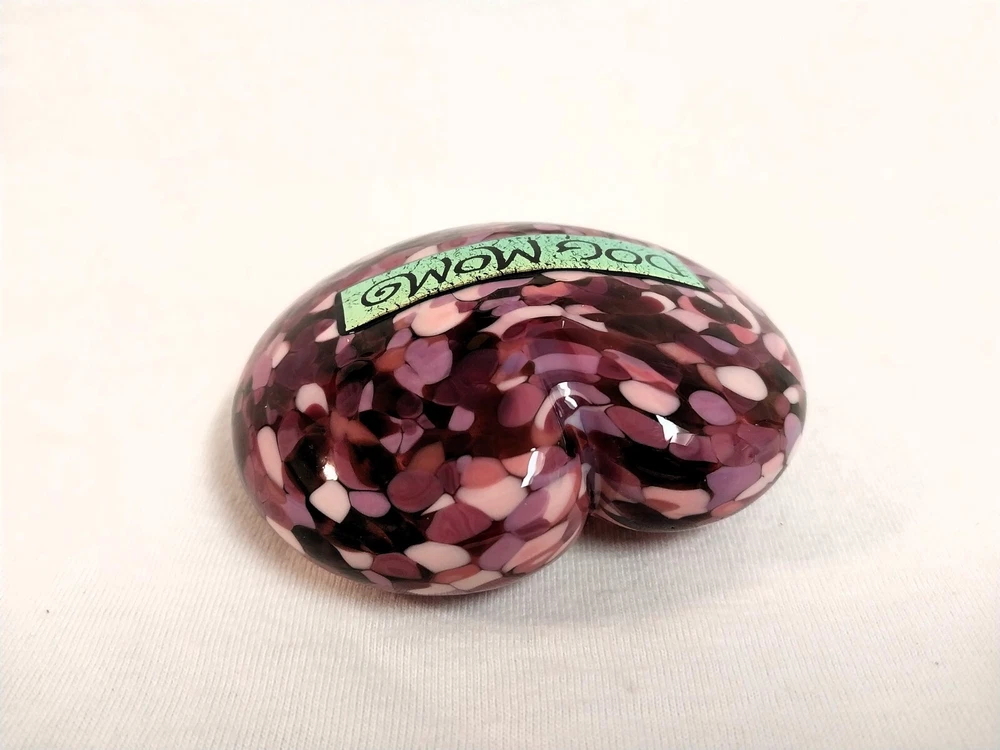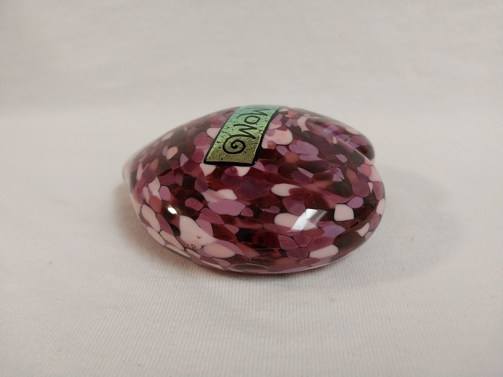 Up For Sale Is a Mad Art Studios "Dog Mom" Heart Shaped Glass Paperweight It's in very good condition. Beautifully colored in various shades of pink, purple and lavender, it measures about 3.5" in diameter, 1.5" tall and weighs 12.5 lbs. If you have any questions, feel free to message me. Thanks for looking!