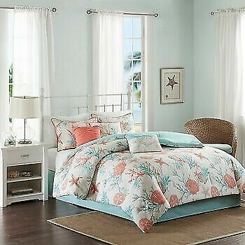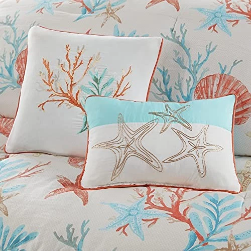 Madison Park MP10-2706 Pebble Beach 7 Piece Comforter Set, California King - Coral