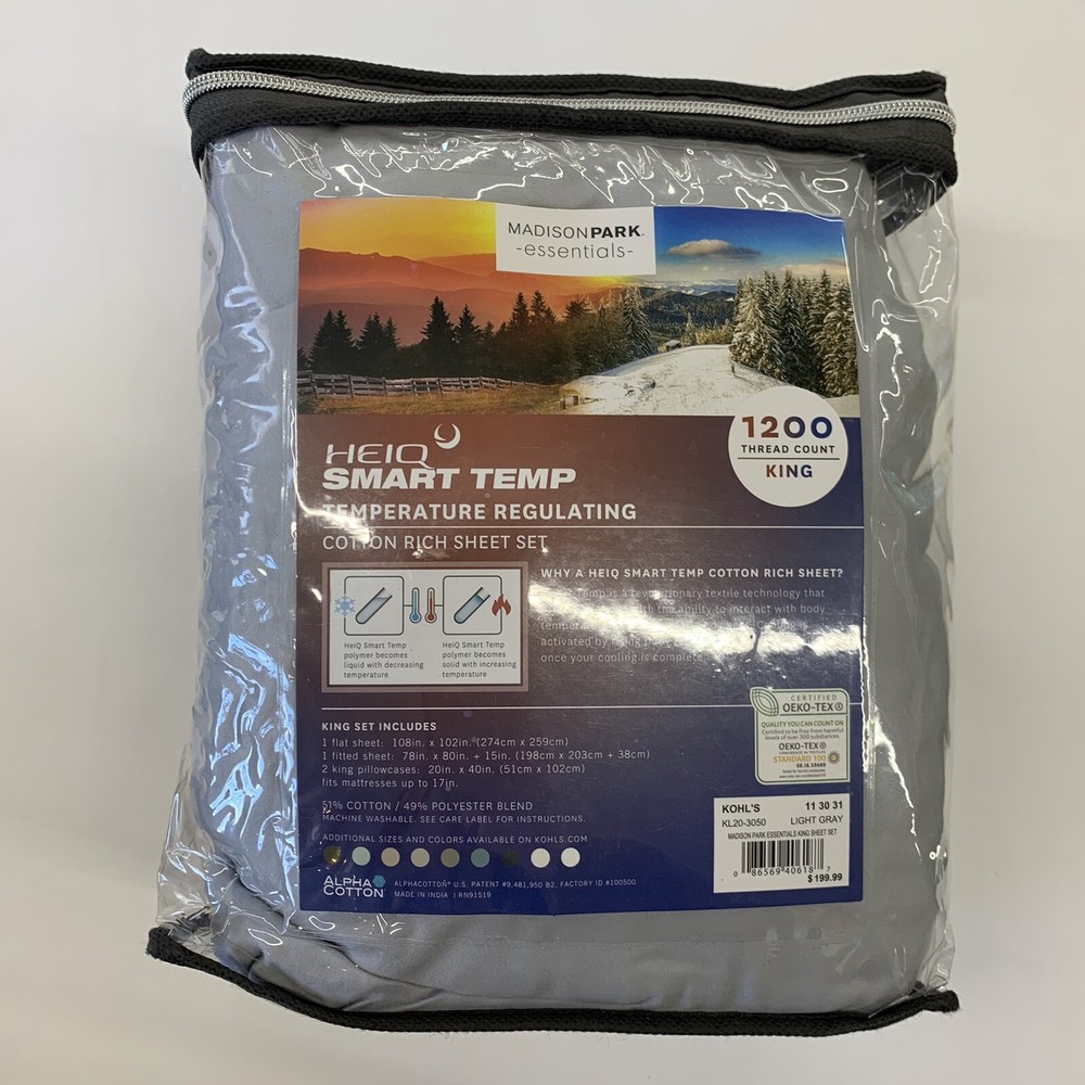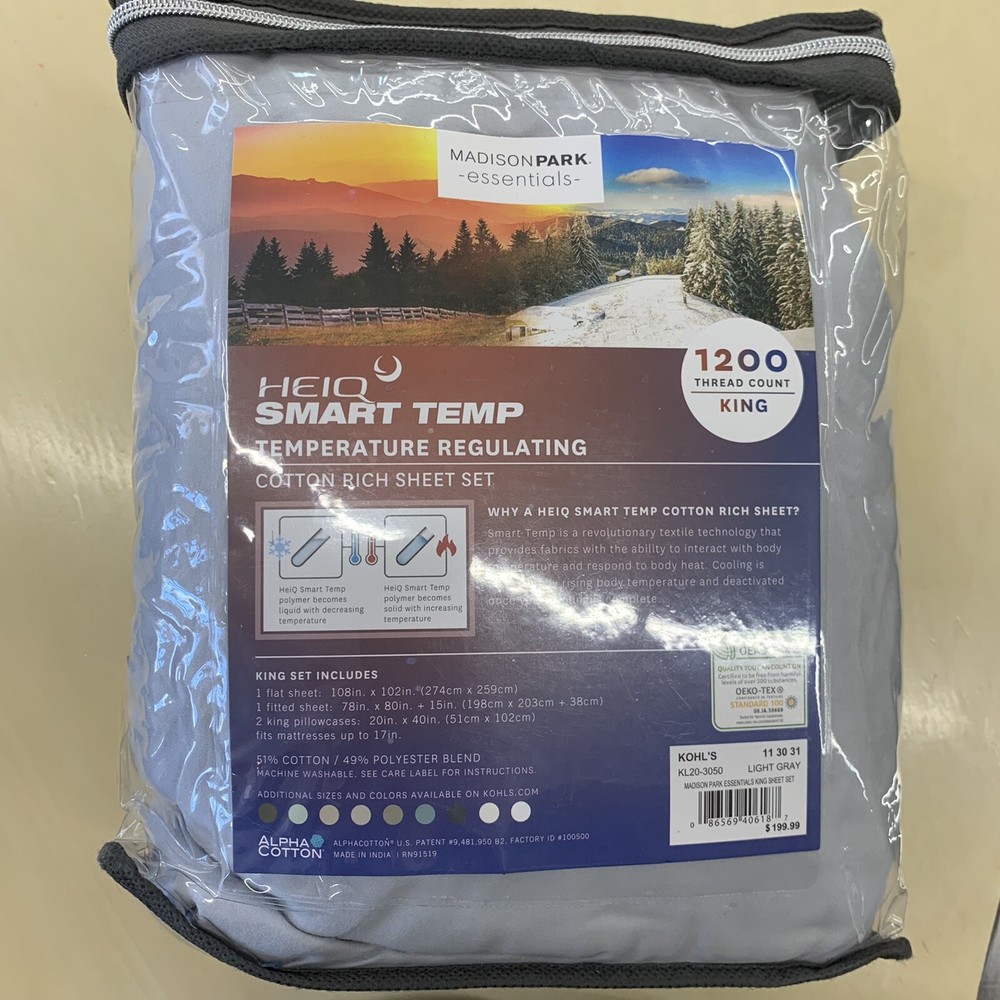 Madison Park 1200 TC HeiQ Smart Temp Temperature Regulating King Sheet Set Grey....