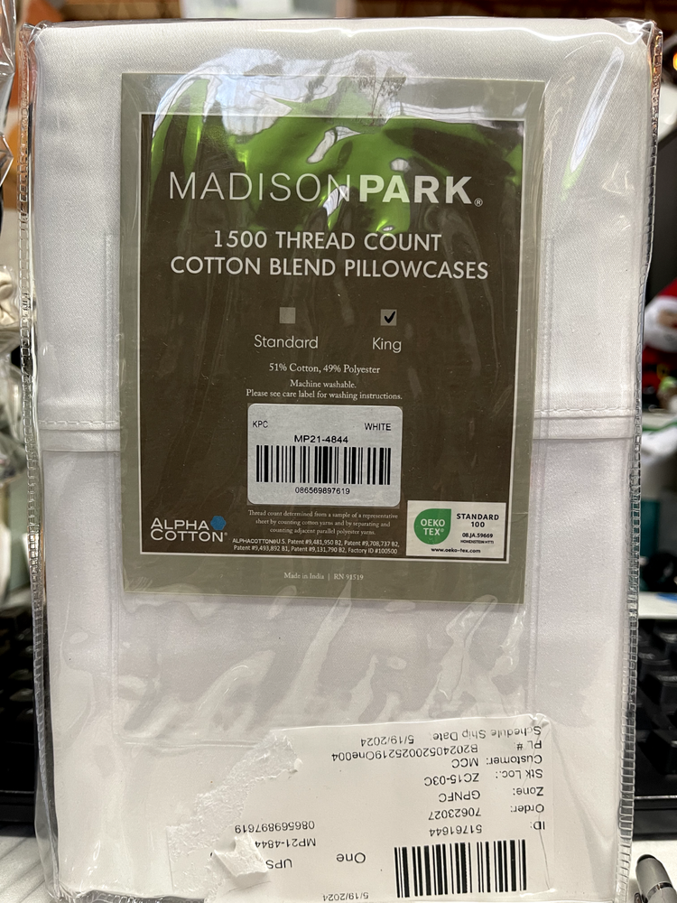 Madison Park 1500 Thread Count Cotton Blend 2 King Size Pillowcase New Includes 2 King Size Pillowcases Brand: Madison Park Size: King Color: White New CJ53