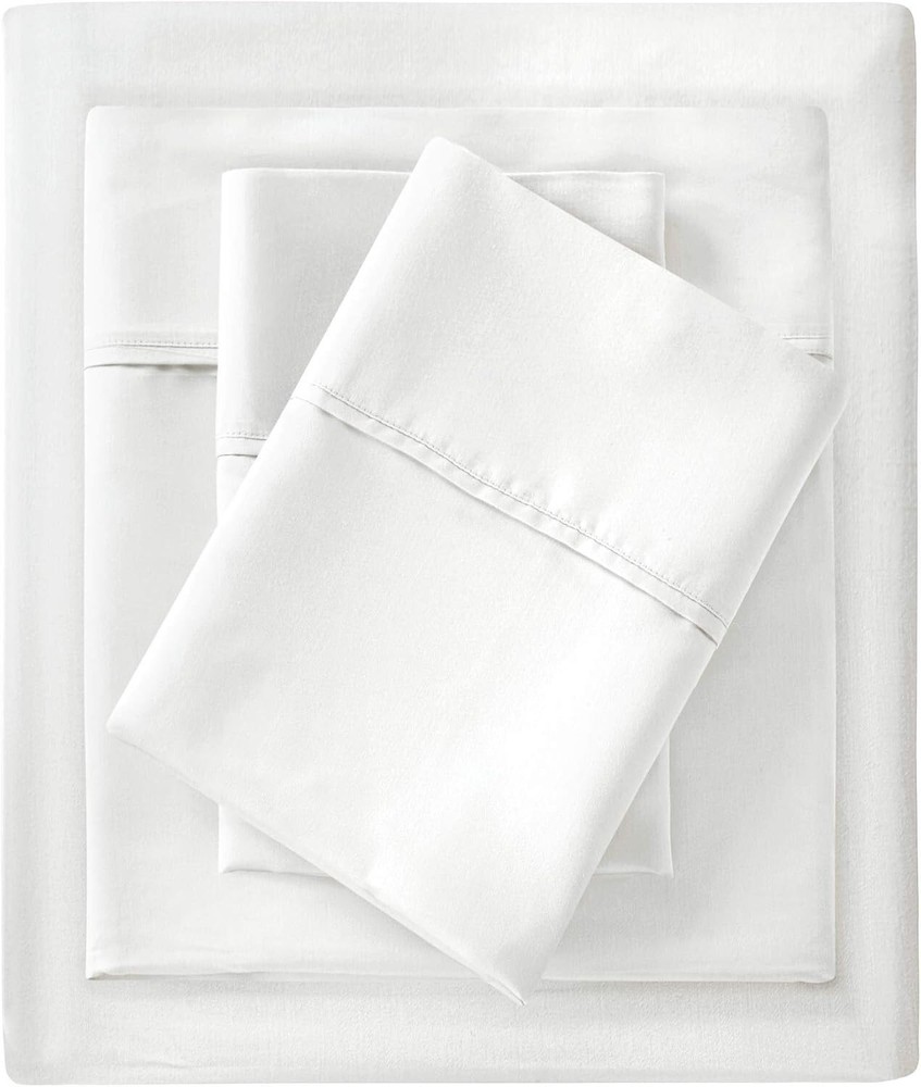 Madison Park 1500 Thread Count Cotton Blend 4PC Pocket King Size White Sheet Set includes a pillowcase, fitted sheet, and flat sheet. Made of a cotton blend material with a solid white color, this modern sheet set is hypoallergenic and suitable for all seasons. It is STANDARD 100 by OEKO-TEX certified and has a luxurious thread count of 1000 or more. Machine washable for easy care.