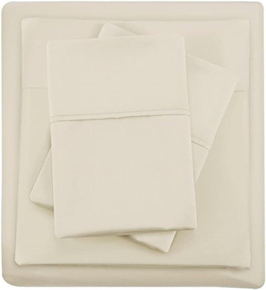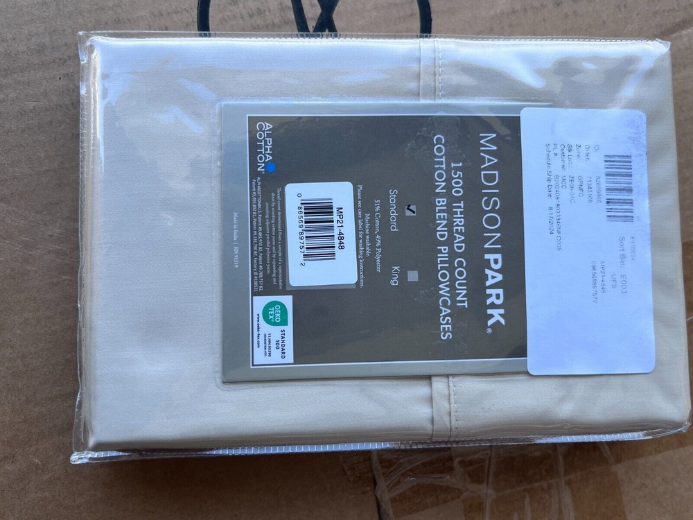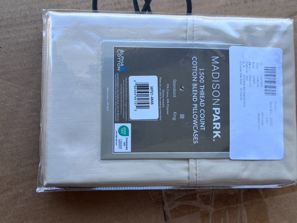 The Madison Park pillow sham set includes two standard-size pillowcases measuring 20x30 inches each. Made of soft cotton material with a 1500 thread count, they come in an elegant ivory color, suitable for a modern bedroom decor. The square-shaped pillow shams feature a solid pattern and a zip closure for easy removal. Designed by Madison Park, this stylish set is perfect for adding a touch of luxury to your bedding ensemble.