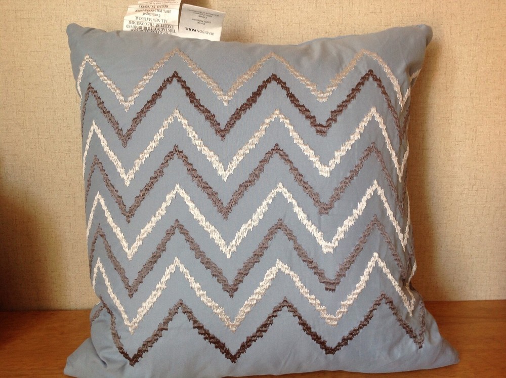 Madison Park 16" Polyester Pleated Decorative Pillow Blue Dark Gray and Silver machine stitched Zig Zags This came with my new Bedspread yesterday. I love it, but I won't use it....
