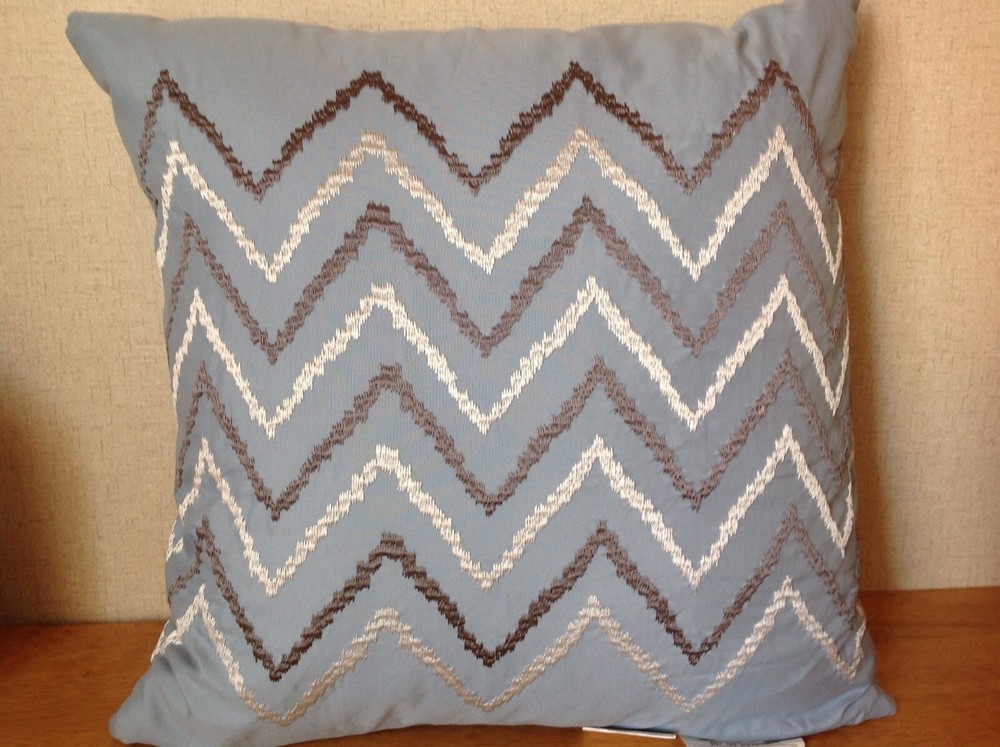 Madison Park 16" Polyester Pleated Decorative Pillow Blue Dark Gray and Silver machine stitched Zig Zags This came with my new Bedspread yesterday. I love it, but I won't use it.