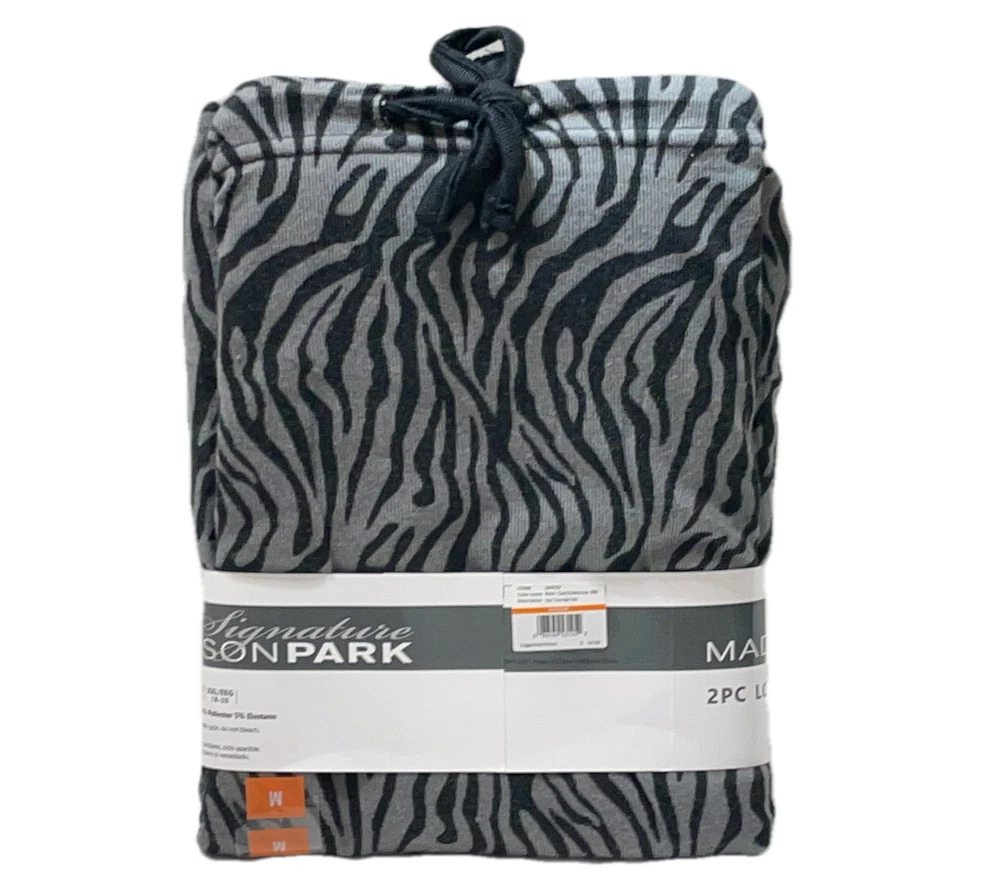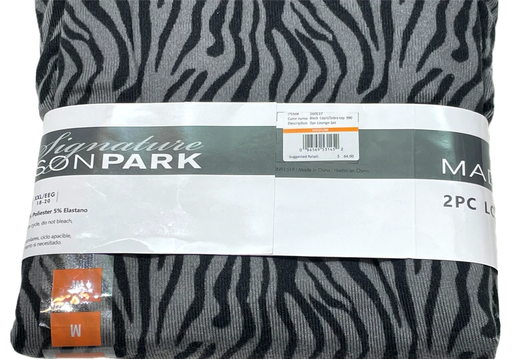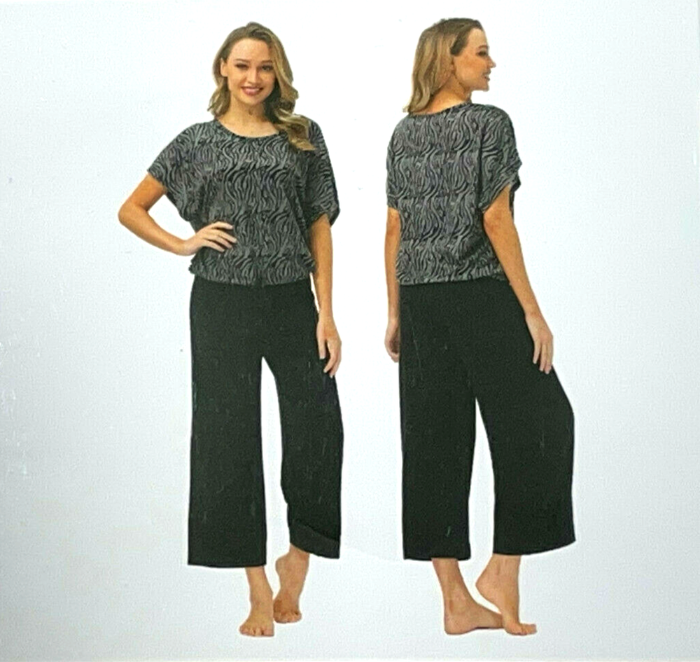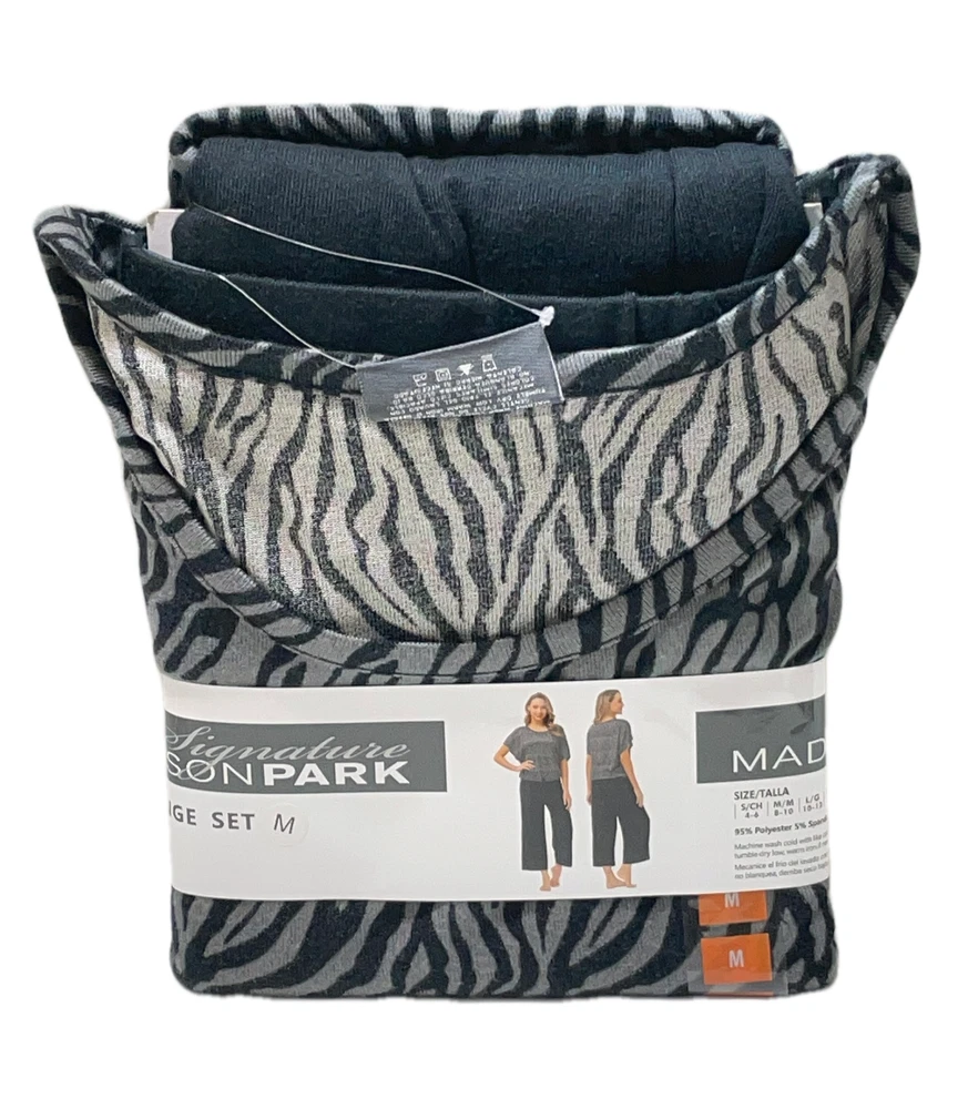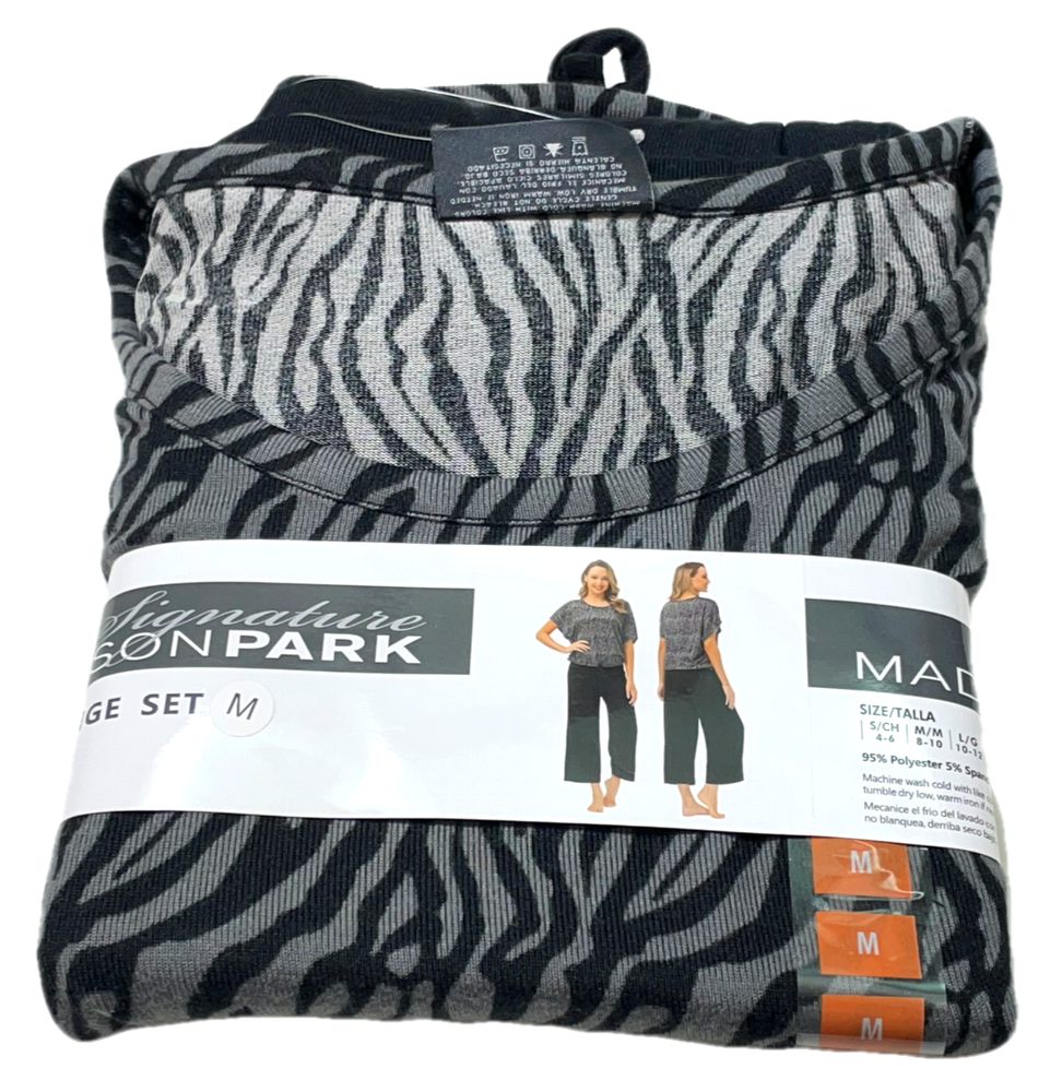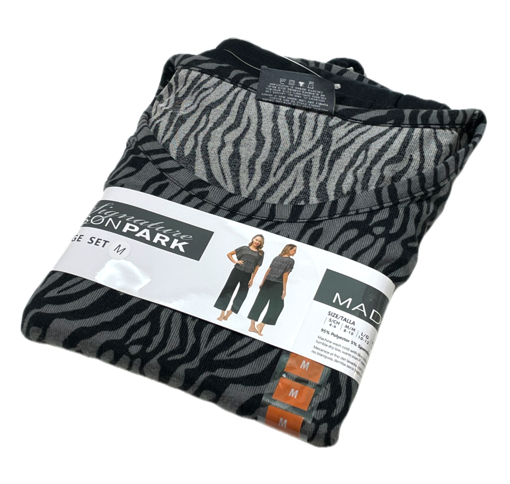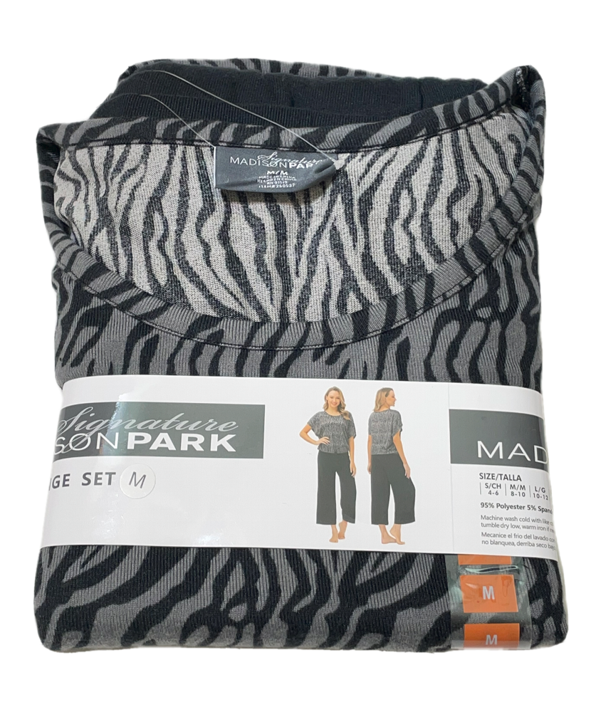 Madison Park Signature Pajama / Lounge Set Black Capri / Zebra Top Size: M (8-10) 95% Polyester / 5% Spandex Stored Smoke Free...