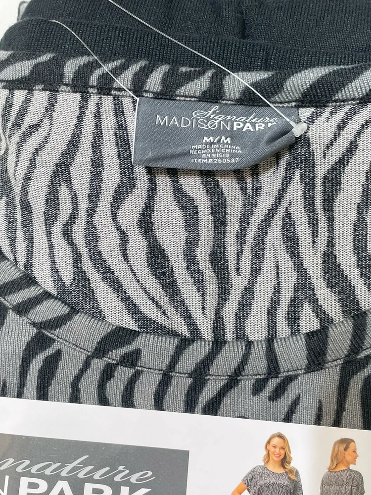 Madison Park Signature Pajama / Lounge Set Black Capri / Zebra Top Size: M (8-10) 95% Polyester / 5% Spandex Stored Smoke Free