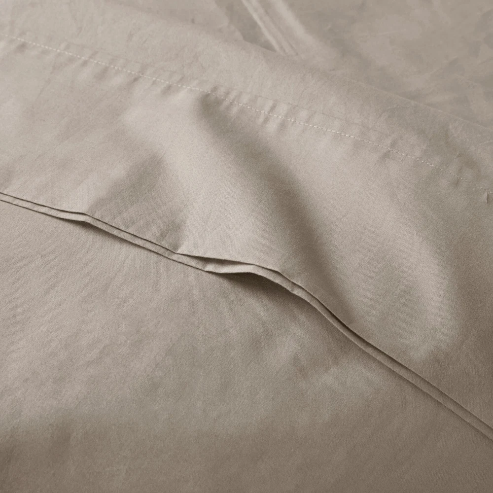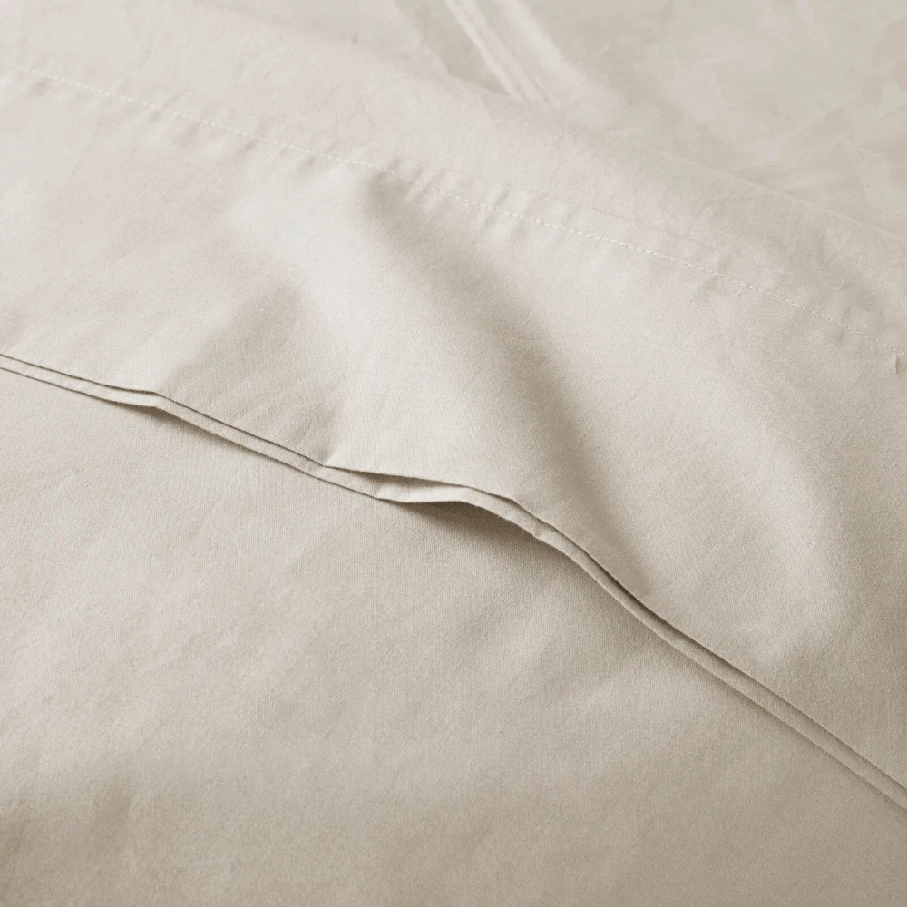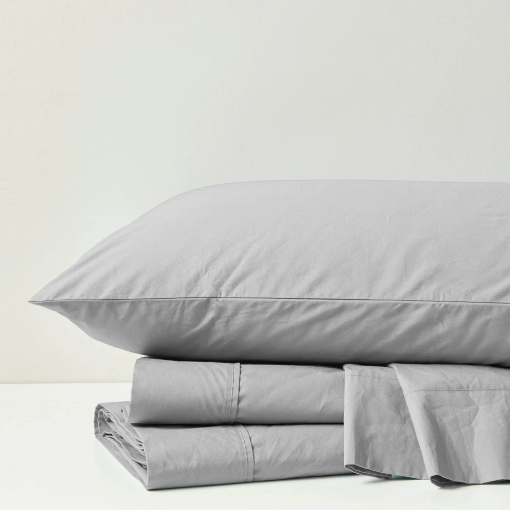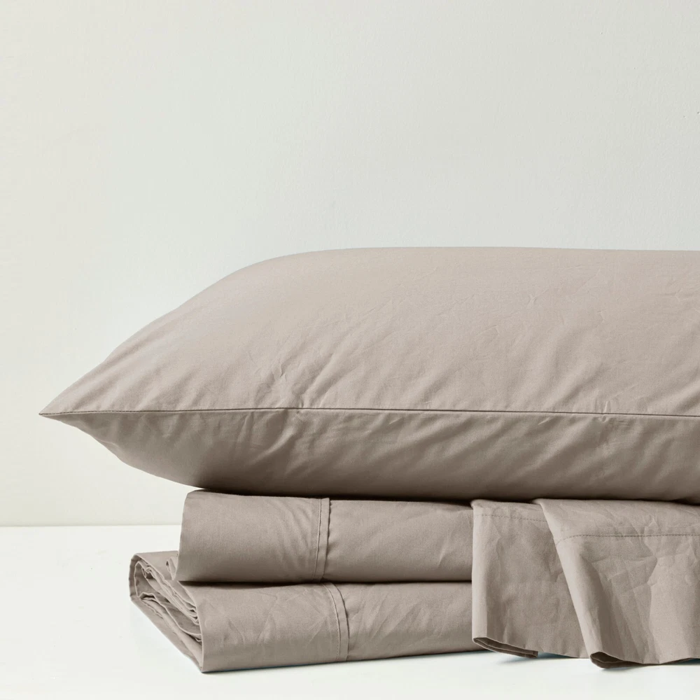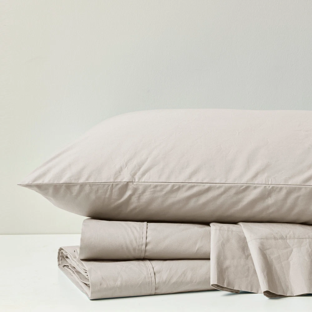 Store Categories Store Categories Bedding Comforters Decorative Pillows Duvet Covers Quilts & Coverlets Sheets Blankets & Throws Mattress Pads Pillows Home Decor Window Treatments Wall Art Home Accents Furniture Beds Dining Seating Ottomans & Benches Accent Chairs Accent Tables Dining Tables Sofas Bath Bath Robes Shower Curtains Towels Bath Rugs Bath Accessories Apparel Pajama Sets Nightgowns Rugs Rugs & Carpets Lighting Lamp Pendant Other Product Overview Details DESCRIPTION Sleep in year-round breathable comfort with these relaxed cotton sheet sets. These sheets have been lightly brushed for an ultra-soft feel. The percale weave combined with the cotton makes this the perfect sheet if you're looking for a cooler and airy good night's sleep. These sheets are also hypoallergenic and machine washable for easy care. FEATURES • 200 Thread Count 100% Cotton Percale sheet set • Percale weave is lightly brushed to have soft feel • Breathable and moisture absorbent • Sheet set includes flat sheet, fitted sheet, 2 pillowcases (1 pillowcase for Twin sizes) • Becomes relaxed after every wash • Fitted sheet fits up to 17" pocket depth mattresses (16" for Twin) comes fully elasticized for better coverage and fit • Machine washable for easy care MATERIAL 100% Cotton Single Pick Peached/Brushed Percale Sheet Available Sizes: Twin Sheet Set includes: 1 Flat Sheet: 68"W x 96"L 1 Standard Pillowcase: 20"W x 31"L 1 Fitted Sheet: 39"W x 75"L + 14"D Full Sheet Set includes: 1 Flat Sheet: 81"W x 96"L 2 Standard Pillowcases: 20"W x 31"L 1 Fitted Sheet: 54"W x 75"L + 15"D Queen Sheet Set includes: 1 Flat Sheet: 90"W x 102"L 2 Standard Pillowcases: 20"W x 31"L 1 Fitted Sheet: 60"W x 80"L + 15"D King Sheet Set includes: 1 Flat Sheet: 108"W x 102"L 2 King Pillowcases: 20"W x 40"L 1 Fitted Sheet: 78"W x 80"L + 15"D California King Sheet Set includes: 1 Flat Sheet: 108"W x 102"L 2 King Pillowcases: 20"W x 40"L 1 Fitted Sheet: 72"W x 84"L + 15"D Bedding Comforters Decorative Pillows Duvet Covers Quilts & Coverlets Sheets Blankets & Throws Mattress Pads Pillows Home Decor Window Treatments Wall Art Home Accents Furniture Beds Dining Seating Ottomans & Benches Accent Chairs Accent Tables Dining Tables Sofas Bath Bath Robes Shower Curtains Towels Bath Rugs Bath Accessories Rugs Rugs & Carpets Lighting Lamp Pendant Product Overview Product Details DESCRIPTION Sleep in year-round breathable comfort with these relaxed cotton sheet sets. These sheets have been lightly brushed for an ultra-soft feel. The percale weave combined with the cotton makes this the perfect sheet if you're looking for a cooler and airy good night's sleep. These sheets are also hypoallergenic and machine washable for easy care. FEATURES • 200 Thread Count 100% Cotton Percale sheet set • Percale weave is lightly brushed to have soft feel • Breathable and moisture absorbent • Sheet set includes flat sheet, fitted sheet, 2 pillowcases (1 pillowcase for Twin sizes) • Becomes relaxed after every wash • Fitted sheet fits up to 17" pocket depth mattresses (16" for Twin) comes fully elasticized for better coverage and fit • Machine washable for easy care MATERIAL 100% Cotton Single Pick Peached/Brushed Percale Sheet Available Sizes: Twin Sheet Set includes: 1 Flat Sheet: 68"W x 96"L 1 Standard Pillowcase: 20"W x 31"L 1 Fitted Sheet: 39"W x 75"L + 14"D Full Sheet Set includes: 1 Flat Sheet: 81"W x 96"L 2 Standard Pillowcases: 20"W x 31"L 1 Fitted Sheet: 54"W x 75"L + 15"D Queen Sheet Set includes: 1 Flat Sheet: 90"W x 102"L 2 Standard Pillowcases: 20"W x 31"L 1 Fitted Sheet: 60"W x 80"L + 15"D King Sheet Set includes: 1 Flat Sheet: 108"W x 102"L 2 King Pillowcases: 20"W x 40"L 1 Fitted Sheet: 78"W x 80"L + 15"D California King Sheet Set includes: 1 Flat Sheet: 108"W x 102"L 2 King Pillowcases: 20"W x 40"L 1 Fitted Sheet: 72"W x 84"L + 15"D