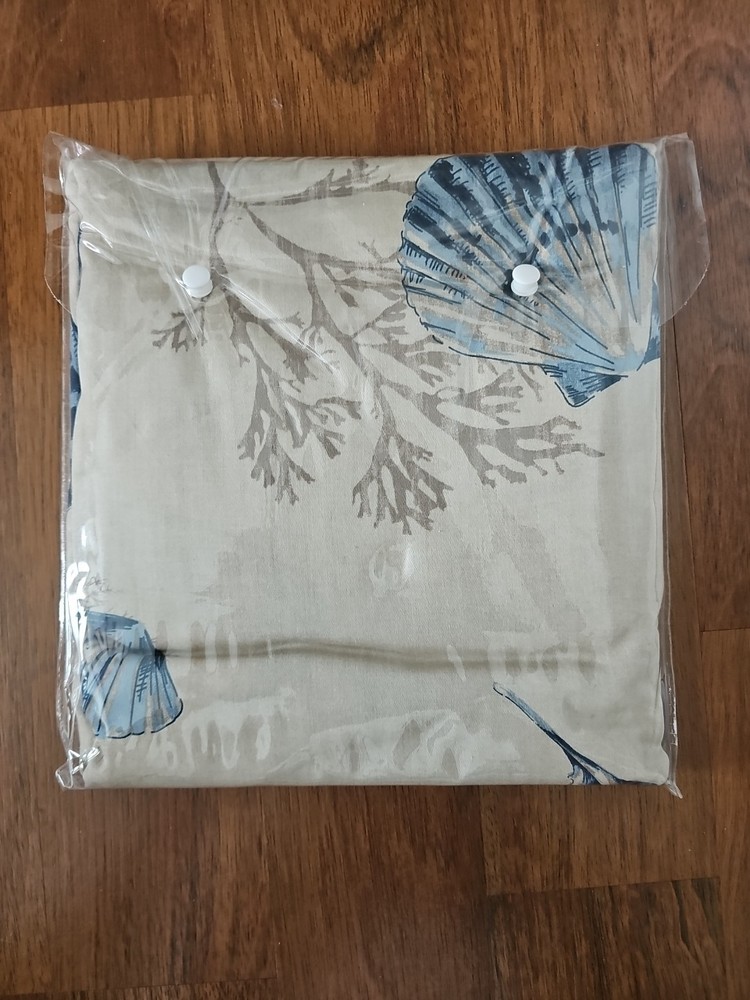 The Madison Park 200TC Cotton Sateen Printed Shower Curtain in the seashell pattern is a modern and stylish addition to any bathroom decor. Made of soft cotton material, this shower curtain features a beautiful blue color and intricate details. Suitable for both showers and bathtubs, it is easy to care for with machine wash instructions. The 72x72 rectangle shape and lightweight design make it practical and convenient for any bathroom setting. Enhance your bathroom space with this high-quality shower curtain from Madison Park. New unopened condition. Great for a coastal beachy themed bathroom. Tan/beige and blue.