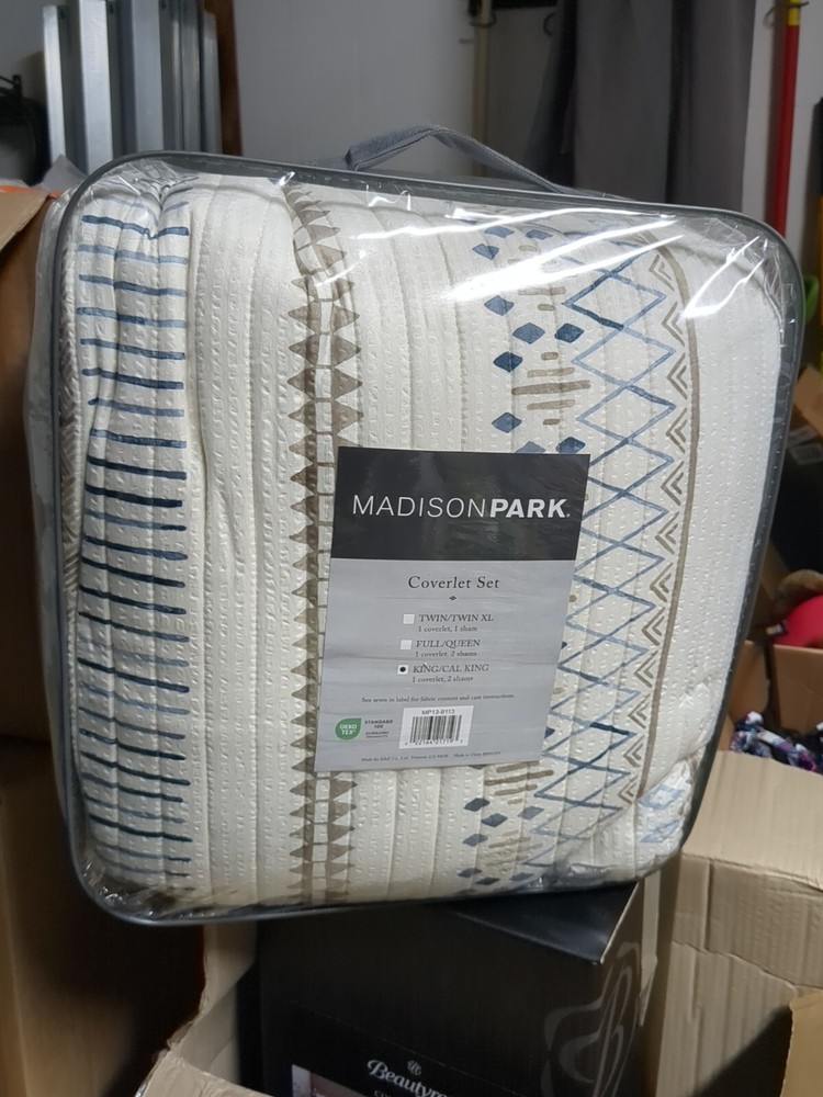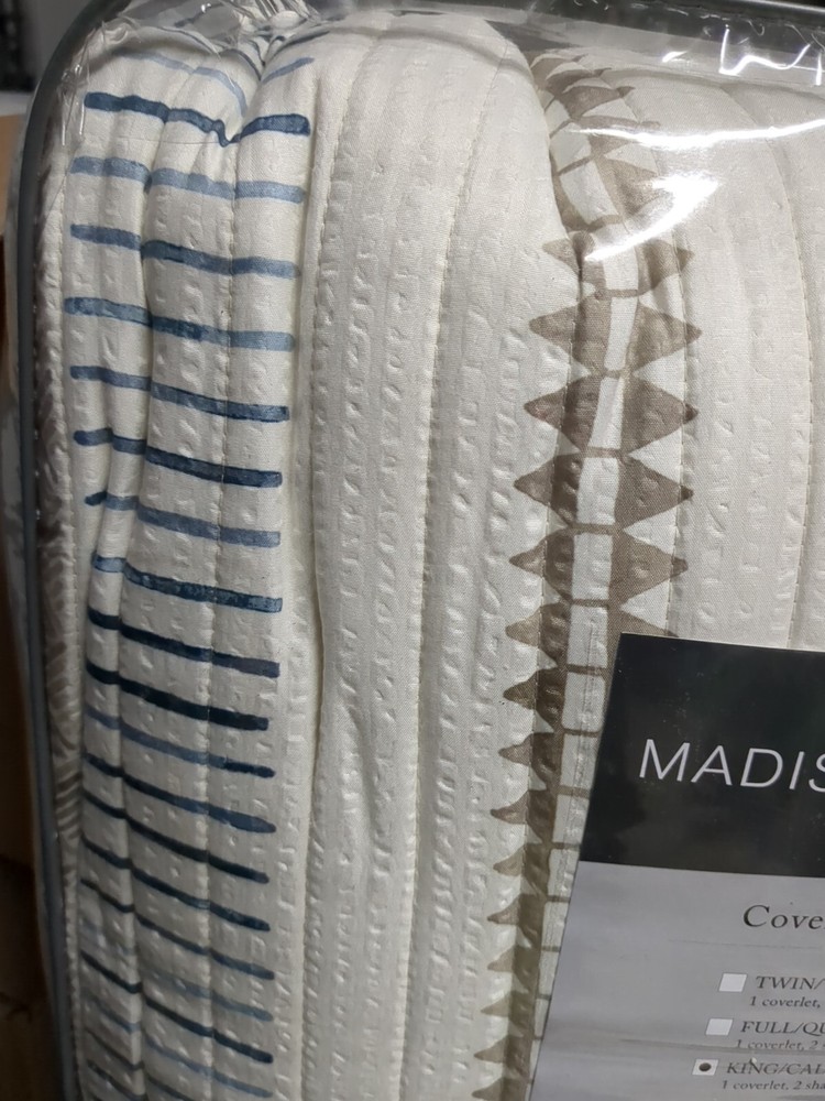 Add a touch of southwestern style to your bedroom with this Madison Park 3 piece printed soft microfiber quilt set. The set includes a king/cal king size quilt, pillow shams, and a fill material made of microfiber. The geometric pattern in taupe/blue colors adds a pop of color to your room. This quilt set is perfect for all seasons and is hypoallergenic, making it a great choice for those with allergies. The set is machine washable and made in CN. Whether you're looking to add to your bedding collection or just want to spruce up your room, this Madison Park quilt set is a great choice.
