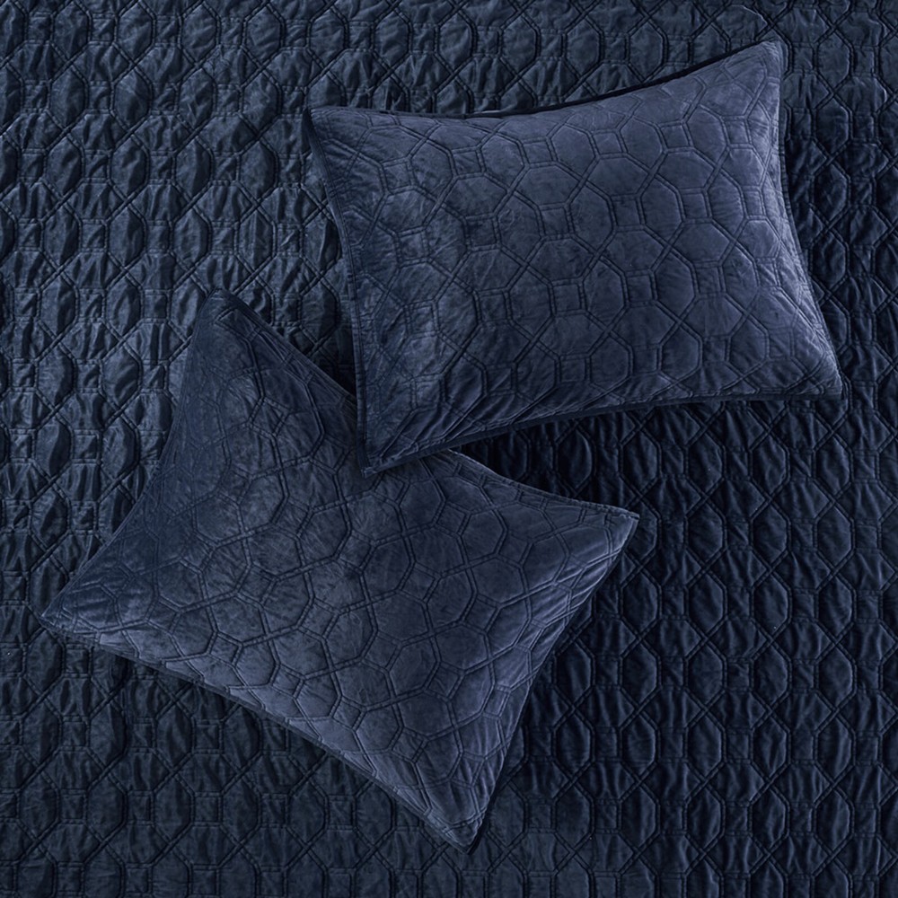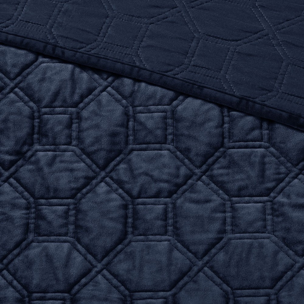 MADISON PARK - COVERLET SET COVERLET SET Color: BLUE Retail: 175k King Reversible Cove Description Madison Park 3 Piece Cal King Coverlet Set in Navy Finish MP13-3304 Madison Park Quebec Reversible Coverlet Set is the perfect coverlet to use as a layering piece or an alternative to your comforter for a new solid look. The classic stitch pattern pairs easily with your existing decor and will sure to add a new decorative element to your bedroom. The coverlet has 100% cotton fill and the face and the reverse of the coverlet are a super soft brushed fabric. Features Description: The Madison Park Harper Faux Velvet Reversible 3 Piece Coverlet Set offers a casual and comfortable update to your bedroom. The navy faux velvet coverlet features a soft texture with a geometric quilted design, for a rich look and feel. Matching shams pair beautifully with the coverlet to complete the quilt set. Providing a charming layering piece to your bed, this coverlet has an antimicrobial treatment that helps reduce bacteria buildup and odors, keeping the fabric fresh longer. Color: NAVY Product Size: 1 Coverlet: 104"W x 94"L, 2 King Shams: 20"W x 36" INCHES Materials: POLYESTER Shipping to Hawaii, Puerto Rico and Alaska is not free. We offer a 30 days refund policy only if the items sold are found to be incorrectly described. We are not responsible for pictures showing incorrectly on your monitor. The refunds will only be made if the following return guidelines are followed: The item must be returned in all the original packaging, including cartons, boxes and must not have been cleaned or laundered. All returns must be boxed and packed securely for shipping. Refunds are within 30 days from the day the customer received the original item. We will send you a prepaid label to send the item back. If the item is found to be as described you will receive a refund of your winning bid minus shipping both ways and a 20% restocking fee. We may except returns that do not qualify under our return policy. These returns will only be accepted at our discretion and a restocking fee may apply. Refund will be made within 5 days of getting the item back.