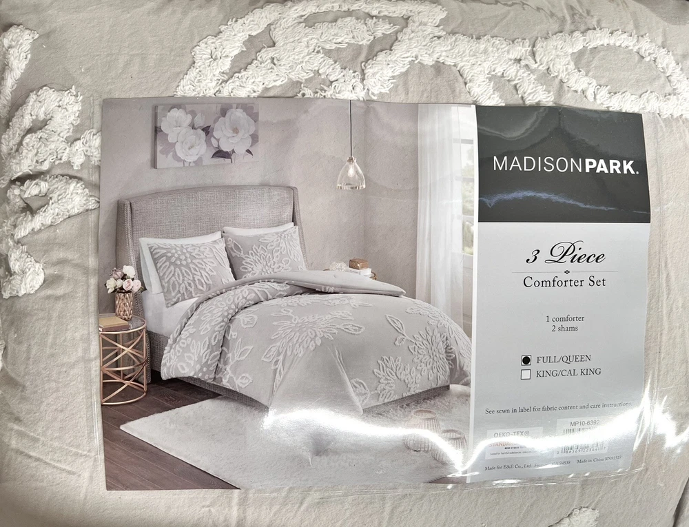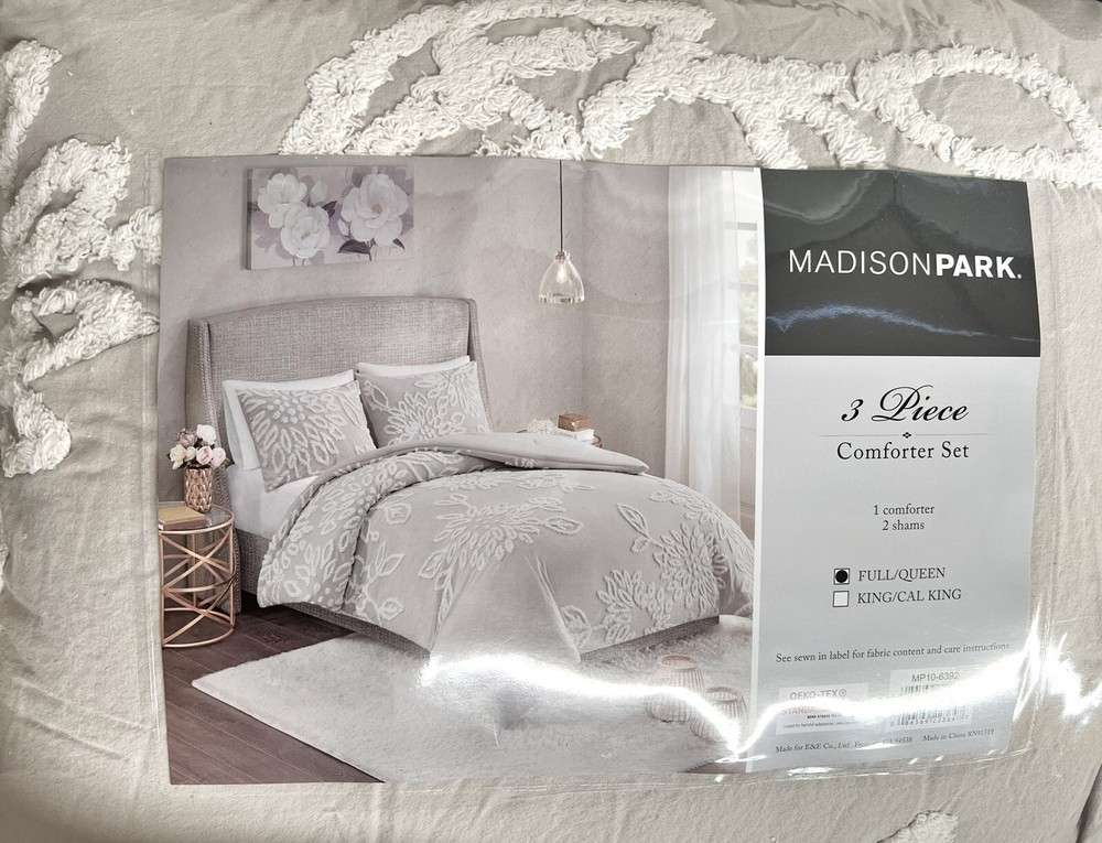 Complete your bedroom decor with the Madison Park 3 Piece Tufted Chenille Floral Comforter Set. The shabby chic comforter features white cotton tufted chenille floral pattern on a solid background that creates a lovely contrast. The 2 matching shams mirror the design of the comforter to complete the farmhouse aesthetic, while hypoallergenic filling in the comforter provides exceptional warmth and comfort