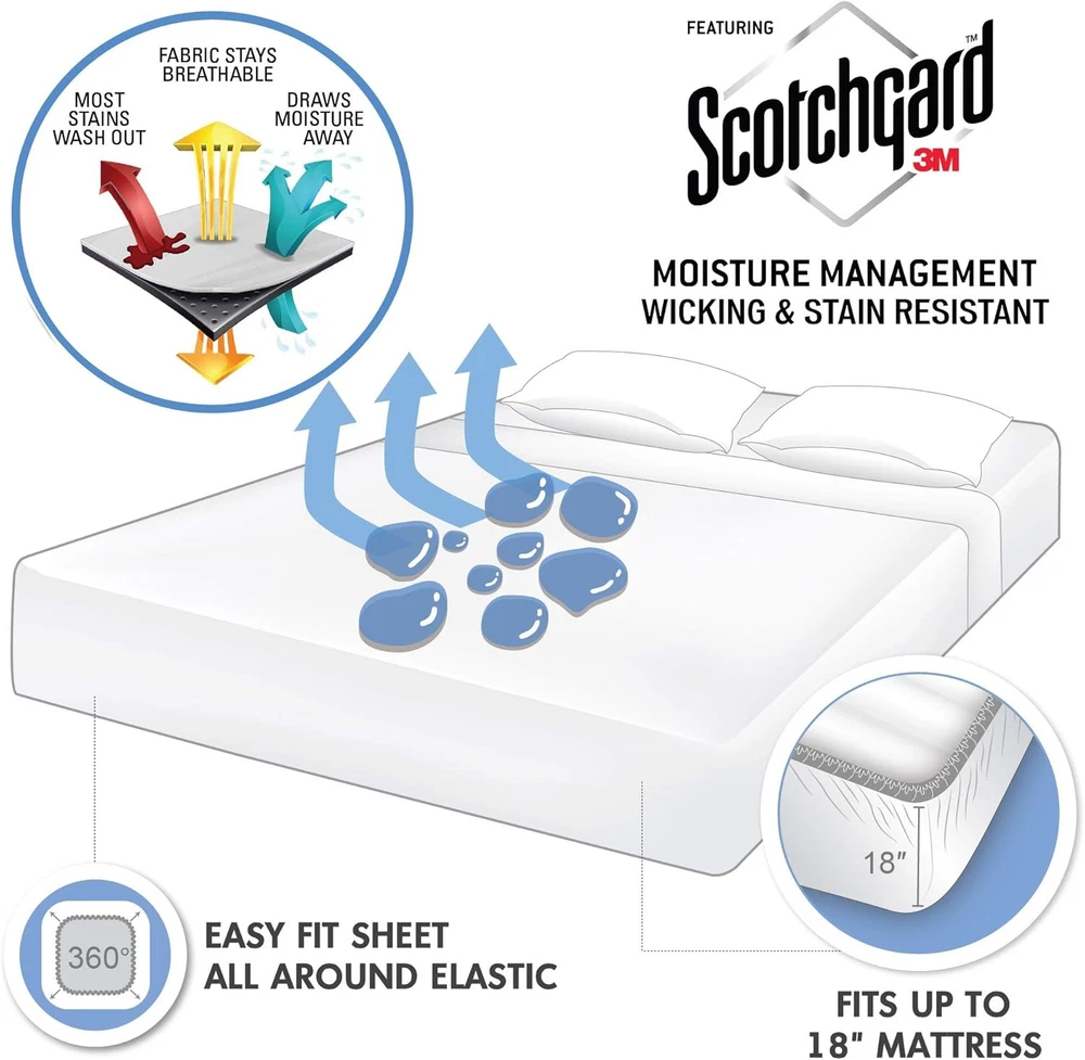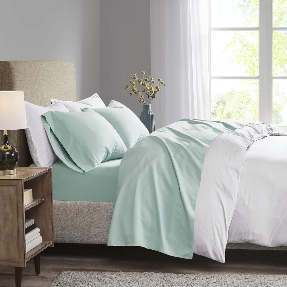 Madison Park 3M Microcell Bed Sheet Set Color Fast, Wrinkle and King, Seafoam Wrap yourself in a cool and comfortable sleep with this moisture wicking luxurious brushed microfiber sheet set. This soft and lightweight sheet set features 3M Scotchgard moisture treatment that wicks away moisture to keep you cool. Fade and stain resistant, this deep pocket sheet set lasts wash after wash and is easy to clean. Our sheets go through a very light brushing process that gives them an incredible soft feel against your skin. These sheets are also OEKO-TEX certified, meaning they do not contain any harmful substances or chemicals, ensuring quality comfort and wellness. 🌟 Product Features ✨ 100% Polyester ✨ The Microcell Sheet Set is perfect for hotter season to keep you cool, dry and comfortable in a hot summer night. ✨ The 3M Scotchgard Moisture Management Treatment wicks away moisture and stain resistant. ✨ It comes with all-around elastic on 16" deep fitted sheet for snug and securely fits mattress sizes, up to a 18" mattress depth. ✨ Set includes: 1 Flat Sheet: 108"W x 102"L, 1 Fitted Sheet: 78"W x 80"L + 16"D, 2 King Pillowcases: 20"W x 40"L ✨ Care instructions: machine wash cold, gentle cycle, and separately 📦 Shipping: Shipping is complimentary within the lower 48 US States. 😊 🚫 We Do Not Ship to PO/APO Boxes, HI or Alaska 🌍 We Do Not Ship Outside of the Continental US ⏱ All items ship within 24-72 hours of Payment 📞 For large items that require Freight shipping, a valid phone number is required to call and schedule your delivery 📜 Terms of Sale and Feedback: ⭐ Feedback is extremely important to us and eBay 👍 If you are satisfied with our transaction, please take a moment to leave Positive Feedback. YOUR Satisfaction is our #1 Priority! ⚠ If there are any issues, PLEASE contact us BEFORE leaving a neutral or negative rating so that we may resolve any concerns. 💖 We PROMISE we can make you happy if you give us a fair chance. 🔃 Returns / Concerns: 📅 All items qualify for returns within 14 - 30 days of receipt. Buyer is responsible for return shipping on any item that is not damaged. 🛒 Please be sure this is an item you want before making your purchase. Customer Satisfaction is our TOP priority! 📦 All items are IN STOCK at time of listing. 📊 Inventory on eBay changes constantly and it is impossible to maintain a perfectly accurate count of all items. 🙋♀️ Please do not penalize us if we have to issue you a refund! 🙌 Thank You For Your Business!