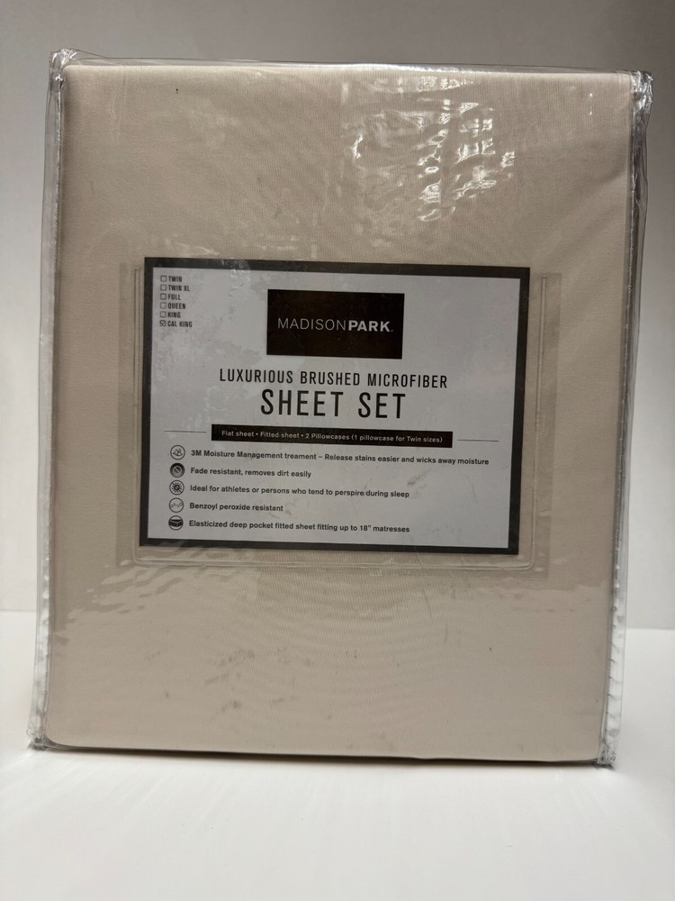 Experience the ultimate comfort with the Madison Park 3M Microcell Solid 3-pc Sheet Set, designed to fit a California King-sized bed. Crafted from 100% polyester, this sheet set promises a soft and luxurious feel, perfect for a restful night's sleep. The solid beige color adds a touch of understated elegance to your bedroom decor, effortlessly complementing any room ambiance. Proudly made in India, this sheet set exemplifies quality and craftsmanship. The set includes a flat sheet, fitted sheet, and pillowcase, all featuring a durable and wrinkle-resistant fabric that maintains its beauty wash after wash. Ideal for those who appreciate the blend of comfort and style in their bedding essentials.