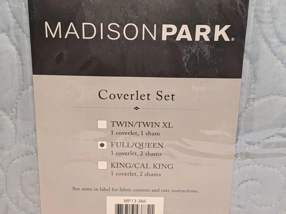Madison Park 3-Piece Reversible Full/Queen Coverlet/Shams Set in Blue. (G)