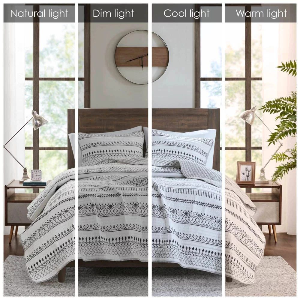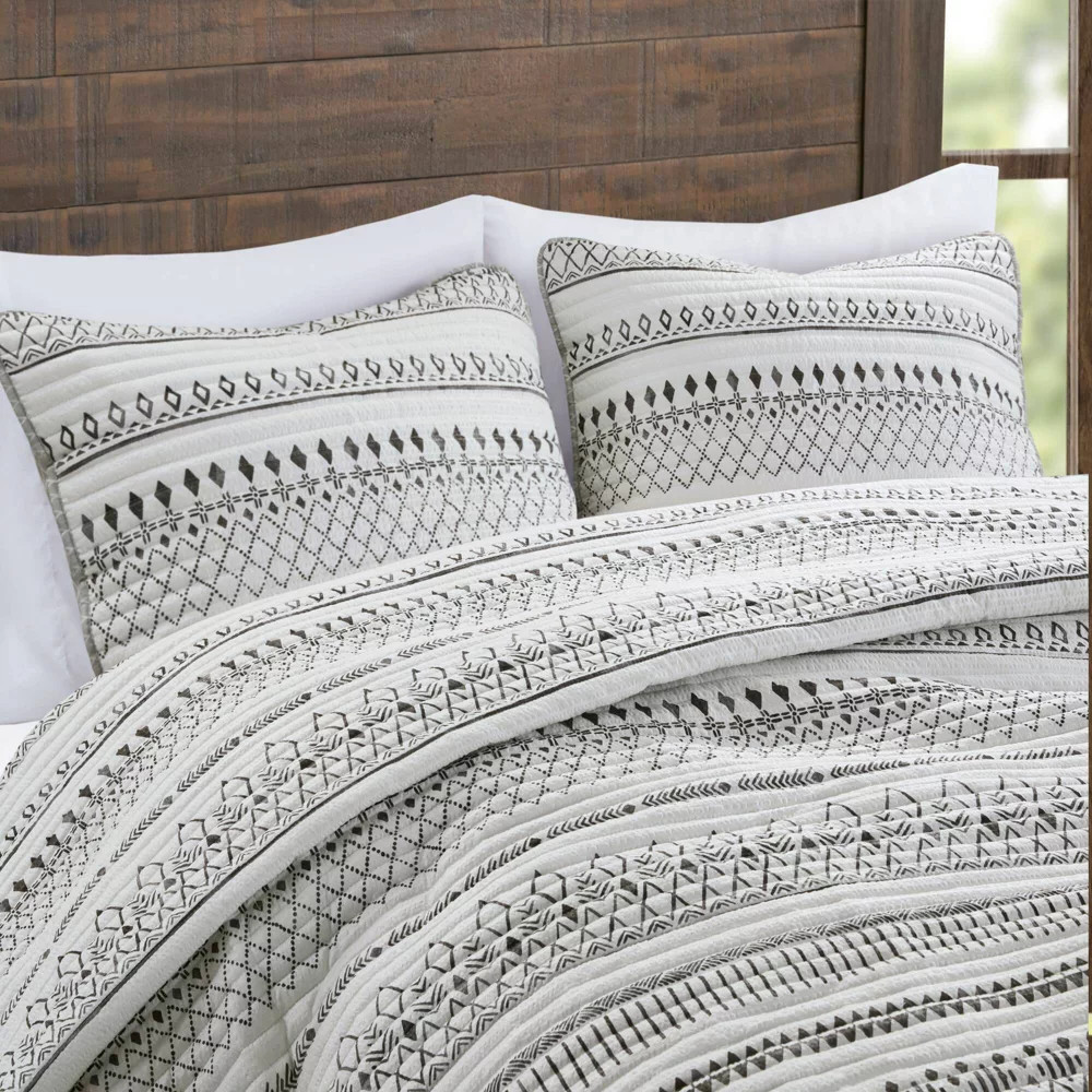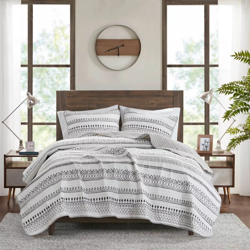 •Printed soft microfiber seersucker face, printed microfiber reverse; polyester filling •Southwest style geometric dimaond print in soft blue and taupe colors on comforter with taupe connected diamond print on the reverse side •Items may come in compressed packaging to ensure efficient shipping •Items will need to be fluffed up and steam ironed if compressed •Hypoallergenic polyester filling in the comforter and pillows (filling contains no allergens and is treated to be dustproof) •Antimicrobial treatment helps reduce the growth of odor causing bacteria and keeps fabric lasting longer •Machine washable in large capacity commercial washer/dryer Description A diamond print in soft blue and taupe colors adorns the light beige face, while a taupe diamond Shop Our Store Contact Us Add to Favorite Sellers Madison Park 3pc Full/Queen Levi Printed Microfiber Seersucker Quilt Set Ivory/Black Product Details •Printed soft microfiber seersucker face, printed microfiber reverse; polyester filling •Southwest style geometric dimaond print in soft blue and taupe colors on comforter with taupe connected diamond print on the reverse side •Items may come in compressed packaging to ensure efficient shipping •Items will need to be fluffed up and steam ironed if compressed •Hypoallergenic polyester filling in the comforter and pillows (filling contains no allergens and is treated to be dustproof) •Antimicrobial treatment helps reduce the growth of odor causing bacteria and keeps fabric lasting longer •Machine washable in large capacity commercial washer/dryer Description A diamond print in soft blue and taupe colors adorns the light beige face, while a taupe diamond print on the reverse adds a complementary farmhouse look. This Madison Park Levi 5 Piece Printed Seersucker Comforter Set includes a comforter, 2 shams, and 2 decorative pillows with tassels or fringe to tie back into the bedding. Law Label: UNDER PENALTY OF LAW THIS TAG NOT TO BE REMOVED EXCEPT BY THE CONSUMER ALL NEW MATERIAL Consisting of 100% POLYESTER FIBER REG.NO. CA 45447 (CN) Certification is made by the manufacturer that the materials in this article are described in accordance with law. MADE FOR E&E CO., LTD. 45875 Northport Loop East, Fremont, CA 94538 Federal RN#91519 MADE IN CHINA Number of Pieces: 3 Piece 1: Quilt: 90 Inches (L) x 90 Inches (W), Quantity 1 Piece 2: Pillow Sham: 26 Inches (L) x 20 Inches (W), Quantity 2 Closure Type: Pillow Sham: 3" Inner Envelope Fill Material: 100% Polyester Fabric Name: Microfiber Style: Quilt Bedding Sets Features: Hypoallergenic, Quilted, Reversible Textile Material: 100% Microfiber Backing Material: 100% Microfiber Includes: 2 Shams, Quilt Thread Count: Not Applicable Fabric Weight Type: Lightweight Fabric Care and Cleaning: Machine Wash, Tumble Dry Payment For fixed priced listings, Buy it Now and Best Offer, payment is required at the time of purchase. We accept PayPal and credit cards via PayPal. We make every effort of shipping within 1 business day of payment clearing. All payments must be through PayPal, utilizing eBay checkout. For auction listings, payment is required within two (2) days of purchase. Any items not paid within two (5) days will risk the product being re-listed and sold to another buyer. Taxes - US We collect sales tax, as required by law. Please see the Shipping and Payments tab for more information. Shipping For fixed priced listings, Buy it Now and Best Offer, payment is required at the time of purchase. We accept PayPal and credit cards via PayPal. We make every effort of shipping within 1 business day of payment clearing. All payments must be through PayPal, utilizing eBay checkout. For auction listings, payment is required within two (2) days of purchase. Any items not paid within two (2) days will risk the product being re-listed and sold to another buyer. Policies If you do need to return your item, please contact us via phone or email (you will receive an email when your product ships with additional details - Subject: Important information about your purchase from Bullseye Deals). You will then be provided with a return shipping label and packing slip. Pack the item carefully. Include the packing slip, apply the shipping label, and return the item within 5 business days of the date you request a return. You must return the item within 5 business days of requesting the return, or your return will be canceled. Once we receive your order we will inspect the return. Please allow up to 5 business days of receiving the returned item for your refund.