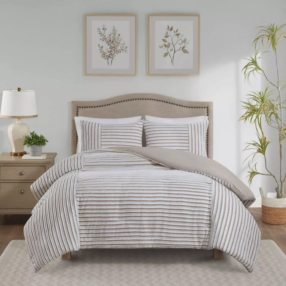 •Polyester cationic dye clipped jacquard; microcell reverse •Casual farmhouse style clip jacquard design in a white and natural two tone stripe effect •Button closure with inner ties to secure the insert (inserts sold separately) •OEKO-TEX labeled textile certified as safe on skin •Antimicrobial treatment to keep the bedding fresher for longer by inhibiting bacteria growth •Machine washable (see care label) Description This Madison Park casual farmhouse style duvet cover set features a pieced clip jacquard pattern in a white and natural two-tone stripe effect. The duvet covers come with button closures and 4 inner ties to help keep your duvet insert secured (inserts sold separately). This machine washable bedding set is OEKO-TEX certified and features an Shop Our Store Contact Us Add to Favorite Sellers Madison Park 3pc Full/Queen River Clipped Jacquard Duvet Cover Set Off-White Product Details •Polyester cationic dye clipped jacquard; microcell reverse •Casual farmhouse style clip jacquard design in a white and natural two tone stripe effect •Button closure with inner ties to secure the insert (inserts sold separately) •OEKO-TEX labeled textile certified as safe on skin •Antimicrobial treatment to keep the bedding fresher for longer by inhibiting bacteria growth •Machine washable (see care label) Description This Madison Park casual farmhouse style duvet cover set features a pieced clip jacquard pattern in a white and natural two-tone stripe effect. The duvet covers come with button closures and 4 inner ties to help keep your duvet insert secured (inserts sold separately). This machine washable bedding set is OEKO-TEX certified and features an antimicrobial treatment. Number of Pieces: 3 Piece 1: Duvet cover: 90 Inches (L) x 90 Inches (W), Quantity 1 Piece 2: Pillow Sham: 26 Inches (L) x 20 Inches (W), Quantity 2 Closure Type: Duvet Cover: Button Fabric Name: Jacquard Style: Duvet Cover Bedding Sets Textile Material: 100% Polyester Backing Material: 100% Polyester Includes: Duvet cover, 2 Shams Thread Count: Not Applicable Industry or Government Certifications: STANDARD 100 by OEKO-TEX Fabric Weight Type: Lightweight Fabric Care and Cleaning: Machine Wash, Tumble Dry Payment For fixed priced listings, Buy it Now and Best Offer, payment is required at the time of purchase. We accept PayPal and credit cards via PayPal. We make every effort of shipping within 1 business day of payment clearing. All payments must be through PayPal, utilizing eBay checkout. For auction listings, payment is required within two (2) days of purchase. Any items not paid within two (5) days will risk the product being re-listed and sold to another buyer. Taxes - US We collect sales tax, as required by law. Please see the Shipping and Payments tab for more information. Shipping For fixed priced listings, Buy it Now and Best Offer, payment is required at the time of purchase. We accept PayPal and credit cards via PayPal. We make every effort of shipping within 1 business day of payment clearing. All payments must be through PayPal, utilizing eBay checkout. For auction listings, payment is required within two (2) days of purchase. Any items not paid within two (2) days will risk the product being re-listed and sold to another buyer. Policies If you do need to return your item, please contact us via phone or email (you will receive an email when your product ships with additional details - Subject: Important information about your purchase from Bullseye Deals). You will then be provided with a return shipping label and packing slip. Pack the item carefully. Include the packing slip, apply the shipping label, and return the item within 5 business days of the date you request a return. You must return the item within 5 business days of requesting the return, or your return will be canceled. Once we receive your order we will inspect the return. Please allow up to 5 business days of receiving the returned item for your refund.