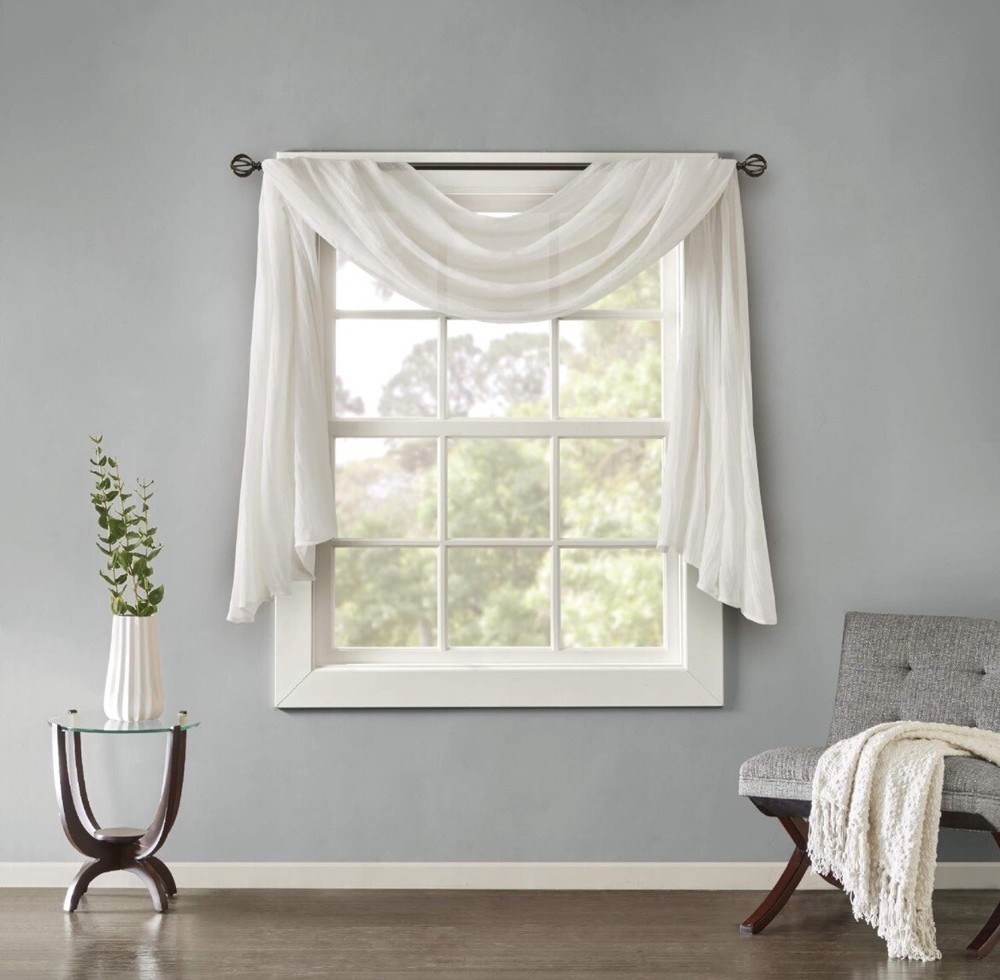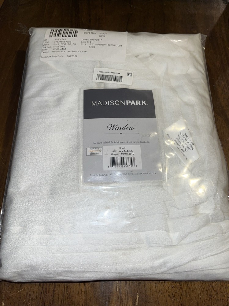 Enhance the beauty of your home with this elegant Madison Park window scarf. The sheer polyester material gives a modern touch to any room and the solid white color perfectly matches with any decor. The scarf measures 42x144 inches and has a tab top heading for easy mounting on any window frame. This window scarf is compatible with the MP40-4528 model and is suitable for indoor use. It is perfect for creating a cozy and warm ambiance in any room. Elevate the style of your home with this modern and versatile window scarf.