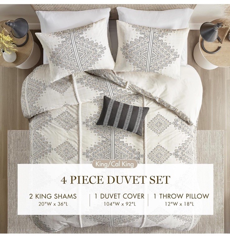 Madison Park 4pc Boho Geometric Duvet Cover Set For King/cal King. Condition is New with tags. Shipped with USPS Ground Advantage....