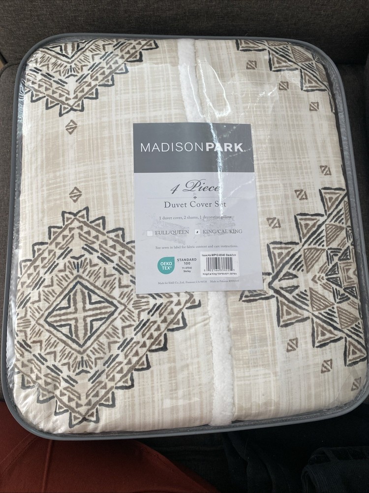 Madison Park 4pc Boho Geometric Duvet Cover Set For King/cal King. Condition is New with tags. Shipped with USPS Ground Advantage.
