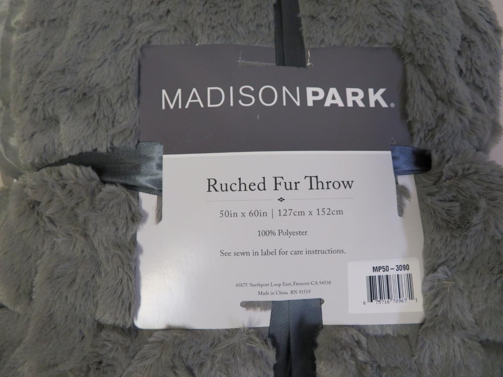 Highlights Ruched pattern faux fur throw Ultra soft faux mink reverse Throw dimensions 50x60" Oeko-Tex Certified, includes no harmful substances or chemicals (#16.HCN.89565) Machine washable for easy care Description Add a modern and sophisticated throw to any space with the Ruched Faux Fur Throw. This throw features an ultra soft long fur that reverses into a soft faux mink that will keep you warm and cozy. Machine washable for easy care, this fur throw is OEKO-TEX certified, meaning it does not contain any harmful substances or chemicals to ensure quality comfort and wellness. Specifications Number of Pieces: 1 Dimensions (Overall): 60 Inches (L), 50 Inches (W) Fabric Name: Faux Fur Textile Material: 100% Polyester Backing Material: 100% Polyester Industry or Government Certifications: STANDARD 100 by OEKO-TEX Fabric Weight Type: Year Round Fabric Construction OEKO-TEX Institution: HOHENSTEIN OEKO-TEX Certification Number: 16.HCN.89565 Care and Cleaning: Machine Wash & Tumble Dry We will be happy to answer any questions or provide more information, just click "ask a question" at the bottom of the page. Thanks! Madison Park 50" x 60" Ruched Faux Fur Throw Blanket Gray Madison Park 50" x 60" Ruched Faux Fur Throw Blanket Gray Click images to enlarge Description Highlights Ruched pattern faux fur throw Ultra soft faux mink reverse Throw dimensions 50x60" Oeko-Tex Certified, includes no harmful substances or chemicals (#16.HCN.89565) Machine washable for easy care Description Add a modern and sophisticated throw to any space with the Ruched Faux Fur Throw. This throw features an ultra soft long fur that reverses into a soft faux mink that will keep you warm and cozy. Machine washable for easy care, this fur throw is OEKO-TEX certified, meaning it does not contain any harmful substances or chemicals to ensure quality comfort and wellness. Specifications Number of Pieces: 1 Dimensions (Overall): 60 Inches (L), 50 Inches (W) Fabric Name: Faux Fur Textile Material: 100% Polyester Backing Material: 100% Polyester Industry or Government Certifications: STANDARD 100 by OEKO-TEX Fabric Weight Type: Year Round Fabric Construction OEKO-TEX Institution: HOHENSTEIN OEKO-TEX Certification Number: 16.HCN.89565 Care and Cleaning: Machine Wash & Tumble Dry We will be happy to answer any questions or provide more information, just click "ask a question" at the bottom of the page. Thanks! Pictures sell! Auctiva offers Free Image Hosting and Editing. 300+ Listing Templates! Auctiva gets you noticed! The complete eBay Selling Solution. Track Page Views With Auctiva's FREE Counter