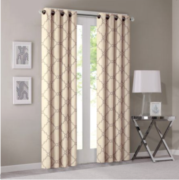 The Sereno Fret PrintnPanel is the perfect addition for a casual and stylish update to your home decor. This window panel features a trendy fretwork in unique and fresh color duos, creating a simple yet modern look. The cotton blend basket weave fabric softly filters the perfect amount of sunlight into your home, while providing texture for natural appeal. Gunmetal grommet top detail makes this panel easy to hang, open, and close