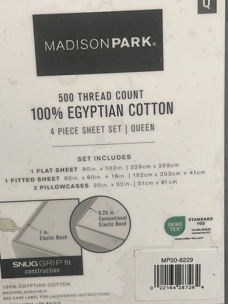 Brand new in packaging Size: Queen Listing is for 4 piece sheet set 100% Egyptian Cotton 500 Thread Count