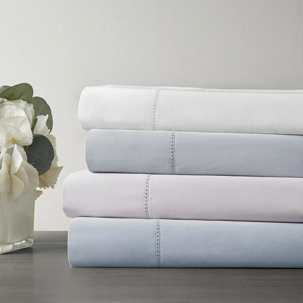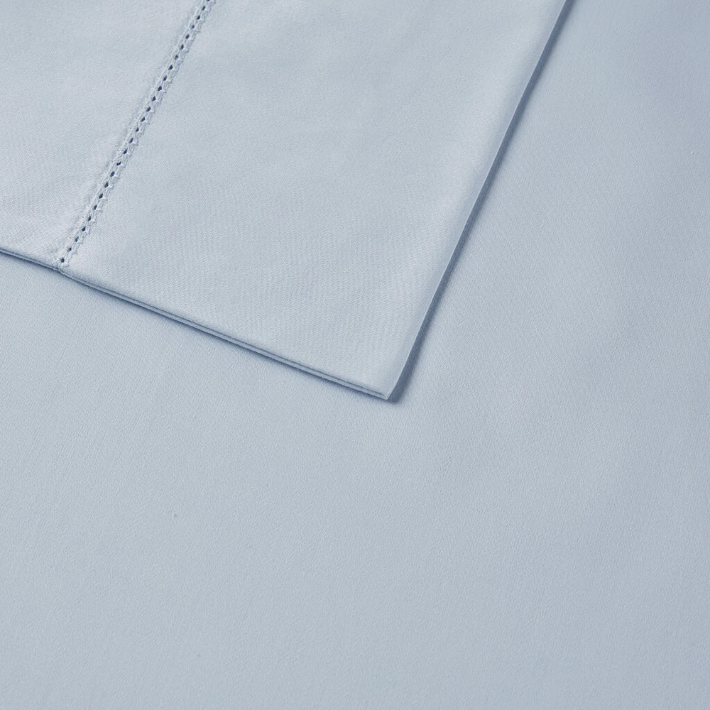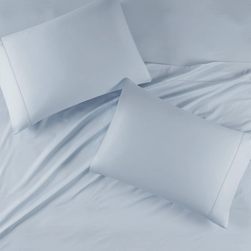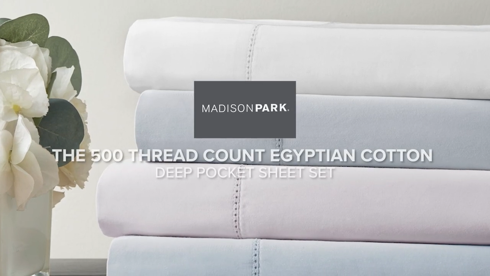 Madison Park 500 Thread Count Egyptian Cotton Deep Pocket Sheet Set Queen/King DESCRIPTION Get the best sleep of your life with this luxurious 500 Thread Count Egyptian Cotton sheet set. Beautifully crafted and specifically tailored for luxurious comfort, each set comes with one flat sheet, one fitted sheet, and two pillowcases. This 100% Egyptian Cotton sheet set features a sateen weave that provides exceptional softness, making it an ideal choice for those who want to drift off into a blissful slumber. We've added a snug grip elastic to make sure the fitted sheet is fully secured and fits deep pocket mattresses up to 18", plus the hemstitch provides an extra touch of luxury. This elegant sheet set is also OEKO-TEX certified, meaning it does not contain any harmful substances or chemicals to ensure quality comfort and wellness. Machine washable for easy care. FEATURES • Set includes flat sheet, fitted sheet, 2 pillowcases • 500 Thread Count 100% Egyptian Cotton • Sateen weave for exceptional softness • Snug grip 1" elastic fully elasticizes the fitted sheet, ensuring a secure and snug fit around the mattress • Deep pocket fitted sheet will fit up to 18" mattresses • Hemstitch adds a luxurious decorative touch • Pillowcases are open ended on one side • Machine washable for easy care • OEKO-TEX Certified, includes no harmful substances or chemicals MATERIAL 100% Egyptian cotton Available Sizes: Queen Sheet Set includes: 1 Flat Sheet: 90"W x 102"L 2 Standard Pillowcases: 20"W x 32"L 1 Fitted Sheet: 60"W x 80"L + 16"D King Sheet Set includes: 1 Flat Sheet: 108"W x 102"L 2 King Pillowcases: 20"W x 40"L 1 Fitted Sheet: 78"W x 80"L + 16"D