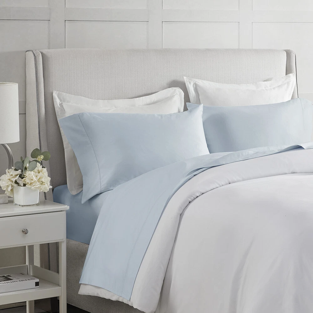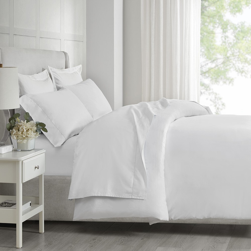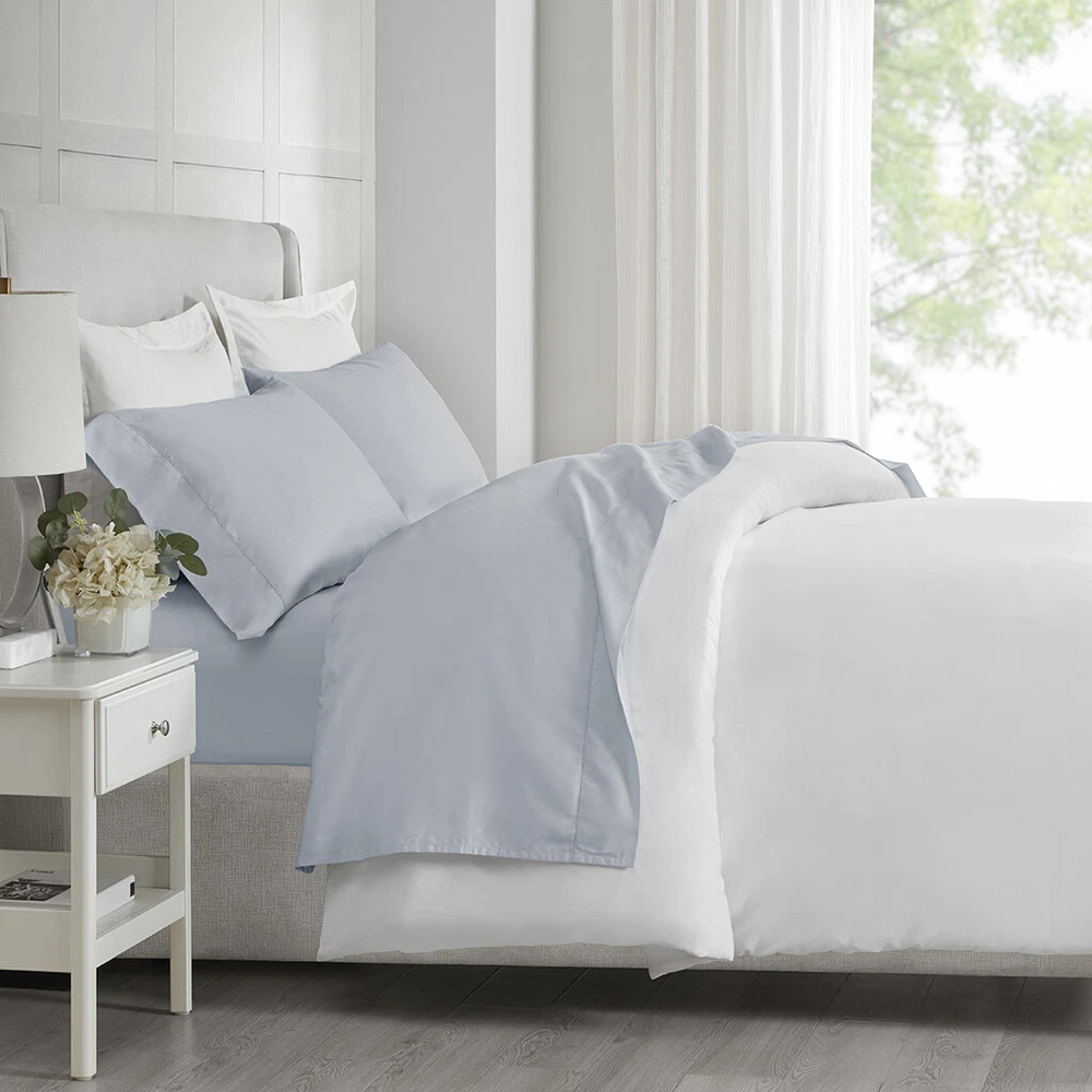 Madison Park 500 Thread Count Egyptian Cotton Deep Pocket Sheet Set Queen/King DESCRIPTION Get the best sleep of your life with this luxurious 500 Thread Count Egyptian Cotton sheet set. Beautifully crafted and specifically tailored for luxurious comfort, each set comes with one flat sheet, one fitted sheet, and two pillowcases. This 100% Egyptian Cotton sheet set features a sateen weave that provides exceptional softness, making it an ideal choice for those who want to drift off into a blissful slumber. We've added a snug grip elastic to make sure the fitted sheet is fully secured and fits deep pocket mattresses up to 18", plus the hemstitch provides an extra touch of luxury. This elegant sheet set is also OEKO-TEX certified, meaning it does not contain any harmful substances or chemicals to ensure quality comfort and wellness. Machine washable for easy care. FEATURES • Set includes flat sheet, fitted sheet, 2 pillowcases • 500 Thread Count 100% Egyptian Cotton • Sateen weave for exceptional softness • Snug grip 1" elastic fully elasticizes the fitted sheet, ensuring a secure and snug fit around the mattress • Deep pocket fitted sheet will fit up to 18" mattresses • Hemstitch adds a luxurious decorative touch • Pillowcases are open ended on one side • Machine washable for easy care • OEKO-TEX Certified, includes no harmful substances or chemicals MATERIAL 100% Egyptian cotton Available Sizes: Queen Sheet Set includes: 1 Flat Sheet: 90"W x 102"L 2 Standard Pillowcases: 20"W x 32"L 1 Fitted Sheet: 60"W x 80"L + 16"D King Sheet Set includes: 1 Flat Sheet: 108"W x 102"L 2 King Pillowcases: 20"W x 40"L 1 Fitted Sheet: 78"W x 80"L + 16"D