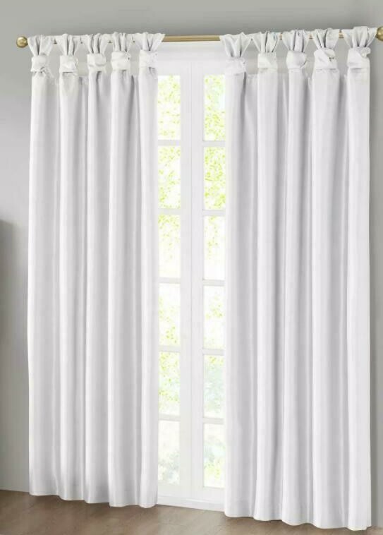 Madison Park Polyester Solid Faux Silk Twisted Tab Blackout Panel MP40-6366 c2225 condition : new Energy efficiency meets a sophisticate style with the Lillian Total Blackout Window Curtain. This window curtain panel showcases a DIY twist tab top finish that allows you to create an elegant display in your living room or bedroom space. The faux silk sheen base fabric features a 3 pass foamback liner on the reverse to block out all outside light, noise, and intrusion ensuring the highest level of privacy. Using thermal technology, the total blackout curtain helps provide maximum energy savings by keeping your room the perfect temperature through the seasons. While this window panel is also OEKO-TEX certified, meaning it does not contain any harmful substances or chemicals, ensuring quality comfort and wellness. This twist tab total blackout window panel is perfect for use in bedrooms, media rooms, or any private space. As shown in the image, two curtain panels need to be purchased for each window; Fits up to a 2" diameter rod. Include: Number of Pieces: 1