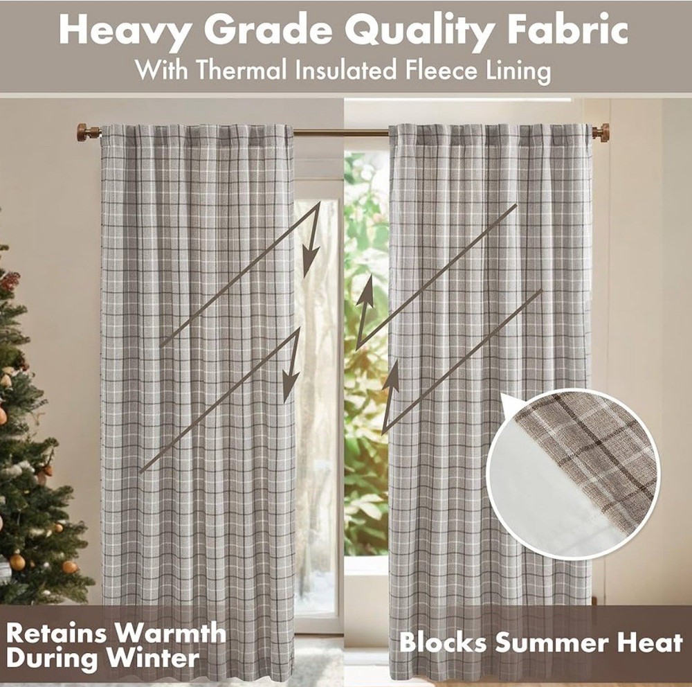 Madison Park Anaheim Cabin Plaid Curtain Window, Thermal Insulated Fleece Lining, Living Room Decor Room Darkening Drape for Bedroom, 1-Single Panel Pack, 50" x 108" ONLY ONE SIDE...