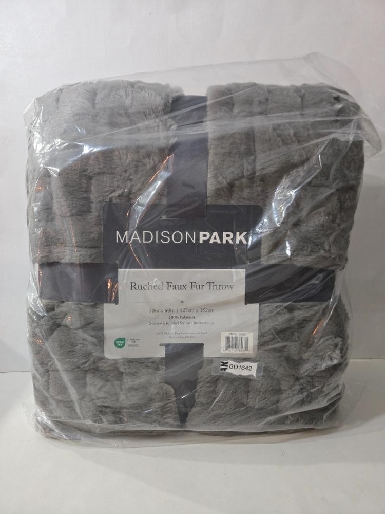 Madison Park 50"x60" Ruched Faux Fur Throw Blanket Add a modern and sophisticated throw to any space with the Ruched Faux Fur Throw. This throw features an ultra soft long fur that reverses into a soft faux mink that will keep you warm and cozy. Machine washable for easy care, this fur throw is OEKO-TEX certified, meaning it does not contain any harmful substances or chemicals to ensure quality comfort and wellness. Brand: Madison Park Dimensions: 50" x 60" Material: 100% Polyester Color: Gray Ruched pattern faux fur throw Ultra soft faux mink reverse Throw dimensions 50x60" Oeko-Tex Certified, includes no harmful substances or chemicals (#16.HCN.89565) Machine washable for easy care Madison Park 50"x60" Ruched Faux Fur Throw Blanket Click images to enlarge Description Madison Park 50"x60" Ruched Faux Fur Throw Blanket Add a modern and sophisticated throw to any space with the Ruched Faux Fur Throw. This throw features an ultra soft long fur that reverses into a soft faux mink that will keep you warm and cozy. Machine washable for easy care, this fur throw is OEKO-TEX certified, meaning it does not contain any harmful substances or chemicals to ensure quality comfort and wellness. Brand: Madison Park Dimensions: 50 " x 60" Material: 100% Polyester Color: Gray Ruched pattern faux fur throw Ultra soft faux mink reverse Throw dimensions 50x60" Oeko-Tex Certified, includes no harmful substances or chemicals (#16.HCN.89565) Machine washable for easy care Combined Shipping We charge full shipping & handling on the item with the highest shipping rate. Each additional items shipping & handling rate will be discounted 50% off. Please insert all items in the cart to show all applicable discounts. Items must be paid together to receive full discount Get images that make Supersized seem small. Showcase your items with Auctiva's Listing Templates! THE simple solution for eBay sellers.