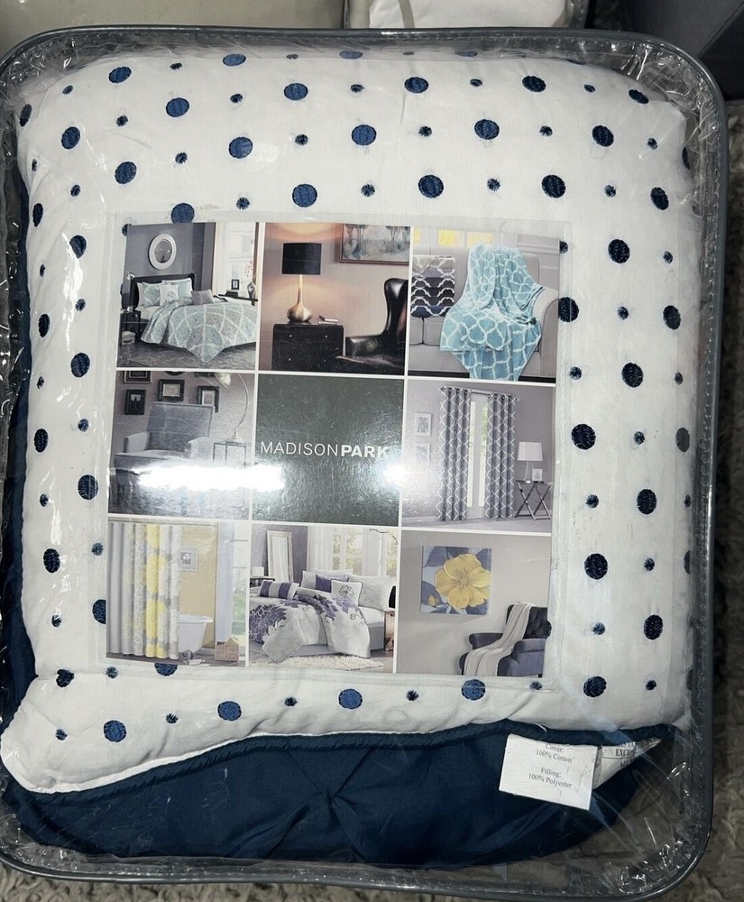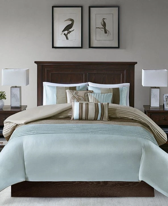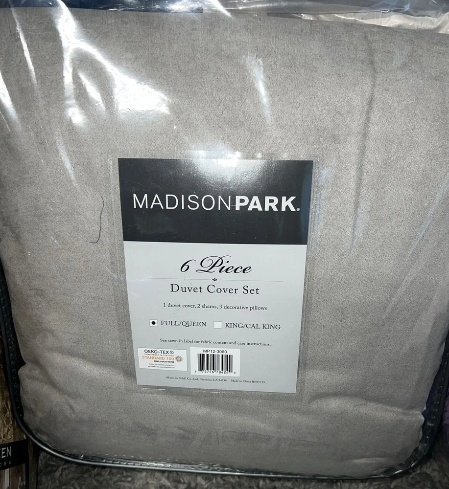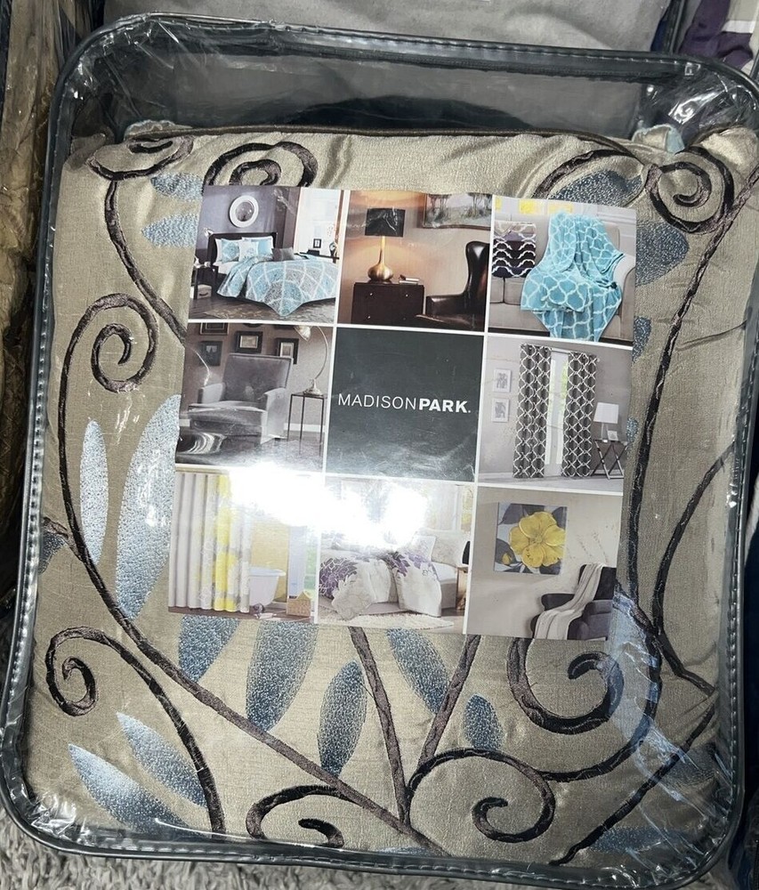 Vienna 6-Pc. Duvet Cover Set, King/California King: Add relaxing calm to your room with the Vienna duvet cover set from Madison Park, featuring an intricate pattern within an oversized ogee motif, while the soft touch of cotton adds to the overall charm. Set includes: duvet cover (104" x 92"), three decorative pillows (18" x 18", 16" x 16", 12" x 16") and two king shams (20" x 36") Oversized ogee motif Duvet/sham: cotton; Thread count: 200, reverses to 180; pillow: cotton; Thread count: 180; pillow fill: polyester Machine washable. Spot clean pillows. Imported Amherst 6-Pc. Duvet Cover Set, Full/Queen: Blue/brown Lavish any room with the luxurious style and comfort of this Amherst duvet cover set from Madison Park, featuring bold colorblocking in contemporary hues, pintucked panels for an added touch of texture and three coordinating decorative pillows for a professionally styled look. Set includes: full/queen duvet (90" x 90"), two standard shams (20" x 26") and three decorative pillows (16" x 16", 18" x 18", 12" x 20") Duvet,pillows,shams, and filling: polyester Lola 6-Pc. Duvet Cover Set, Full/Queen purple: Update your room with the Lola duvet cover set from Madison Park, featuring the relaxed style of a floral pattern and the soft touch of cotton sateen on the duvet cover and sham face. Set includes: duvet cover (90" x 90"), two standard shams (20" x 26") and three decorative pillows (18" x 18", 16" x 16", 12" x 20") Floral pattern Duvet cover/sham: cotton, reverses to cotton/polyester; Thread count: 200, reverses to 180; pillow: cotton/polyester; pillow fill: polyester Machine washable. Spot clean pillows. Imported Machine washable Imported Palisades 6-Pc. Duvet Cover Set, Full/Queen Blue/Gray: Add comfort and style to your bedroom with the Palisades duvet cover set from Madison Park, featuring pieced microsuede on the duvet cover and sham face, reversing to a brushed fabric. Set includes: duvet cover (104" x 92"), two king shams (20" x 36") and three decorative pillows (18" x 18", 16" x 16", 12" x 18") Microsuede from polyester Duvet cover/sham/pillow: polyester; pillow fill: polyester Machine washable. Spot clean pillows. Imported Pebble Beach 6-Pc. Duvet Cover Set, Full/Queen, Coral: Evoke seaside memories with the Pebble Beach duvet cover set from Madison Park, featuring a printed pattern of starfish and coral in white, rich coral and teal tones, while the duvet cover and sham feature the smooth touch of a cotton sateen face. Set includes: duvet cover (90" x 90"), three decorative pillows (18" x 18", 16" x 16", 12" x 18") and two standard shams (20" x 26") Starfish and coral motif Colors: white ground with rich coral and teal accents Asian American & Pacific Islander Owned, Woman Owned Duvet cover/sham: cotton, reverses to cotton/polyester; Thread count: 210 (face); pillow: cotton/polyester; pillow fill: polyester Machine washable. Spot clean pillows. Imported Please note this item may be shipped in a compression bag- allow 24-48 hours for the item to return to its normal size