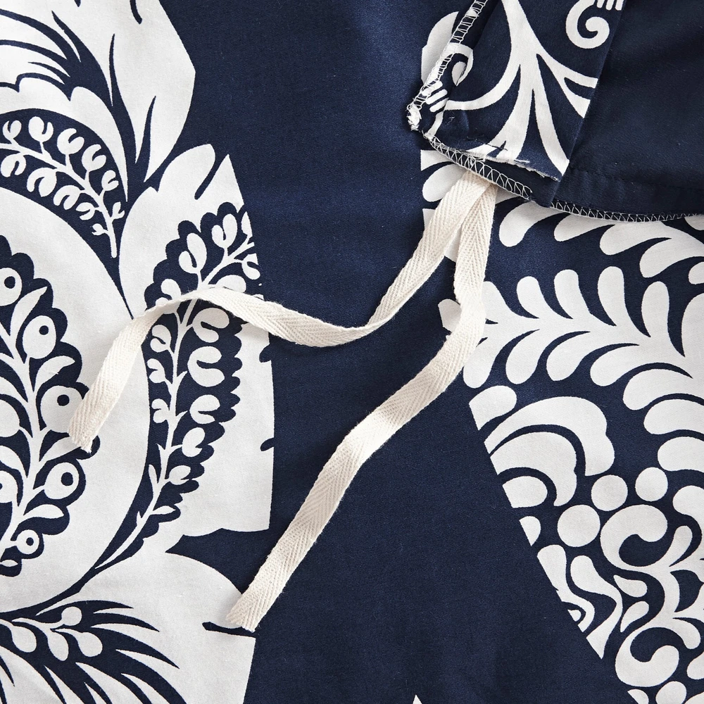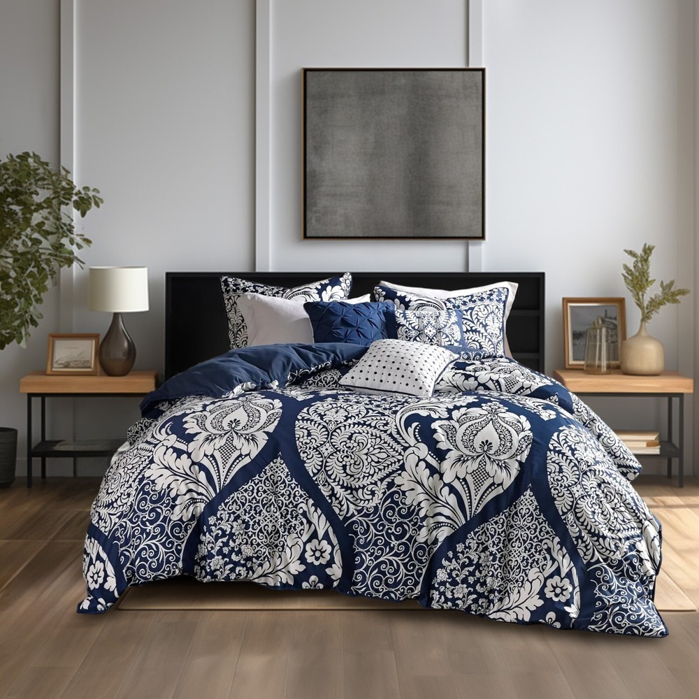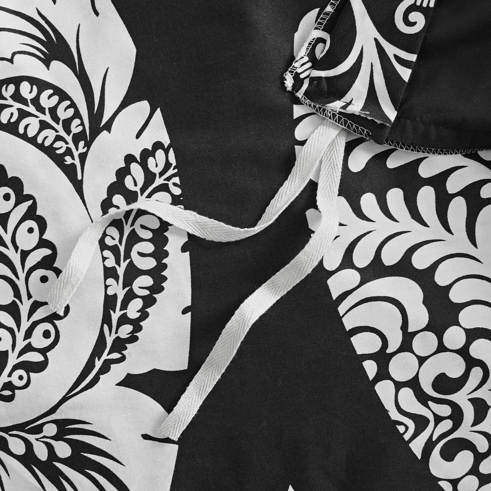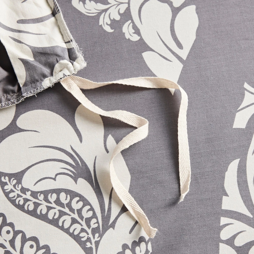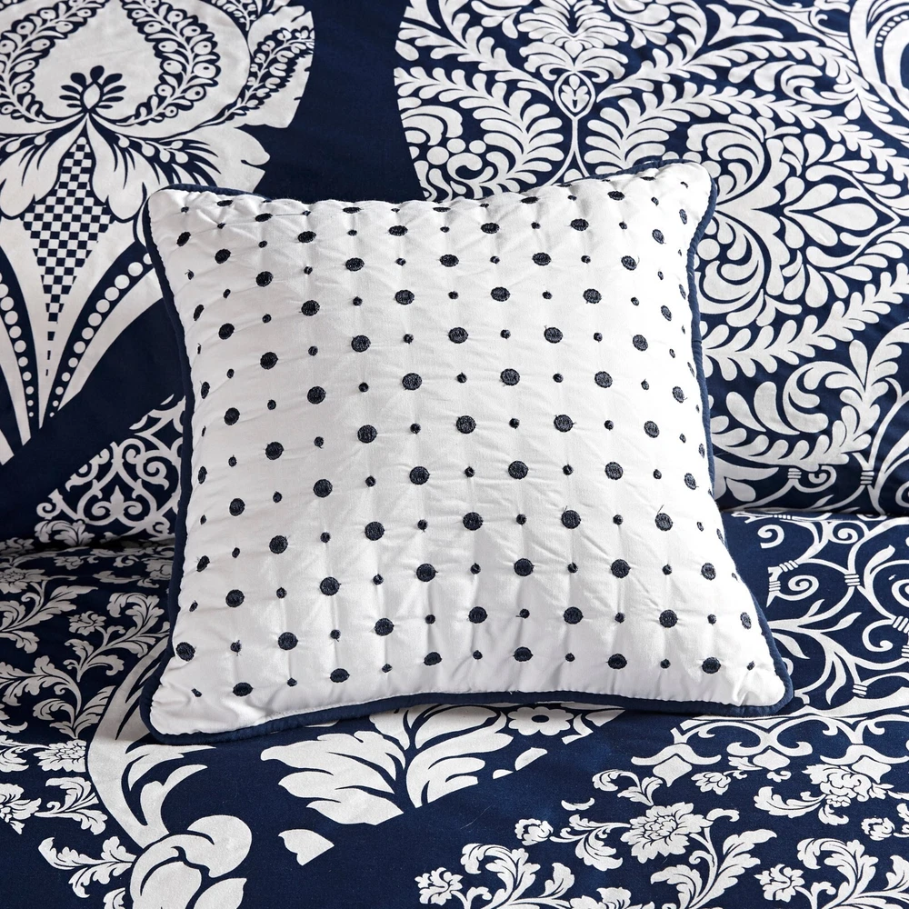 Store Categories Store Categories Bedding Comforters Decorative Pillows Duvet Covers Quilts & Coverlets Sheets Blankets & Throws Mattress Pads Pillows Home Decor Window Treatments Wall Art Home Accents Furniture Beds Dining Seating Ottomans & Benches Accent Chairs Accent Tables Dining Tables Sofas Bath Bath Robes Shower Curtains Towels Bath Rugs Bath Accessories Apparel Pajama Sets Nightgowns Rugs Rugs & Carpets Lighting Lamp Pendant Other Product Overview Details DESCRIPTION The Madison Park Vienna 6 Piece Printed Duvet Cover Set offers an eye-catching update to your bedroom decor. A beautifully intricate damask pattern is flaunted across the duvet cover and shams, for a chic transitional look. The solid reverse perfectly complements the top of the bed, while the flange border adds a charming accent to the duvet cover. Three decorative pillows with embroidered details and fabric manipulation complete the duvet cover set. Made from 100% cotton sateen, this bedding set is OEKO-TEX certified, meaning it does not contain any harmful substances or chemicals to ensure quality comfort and wellness. A button closure helps secure a comforter insert within the duvet cover and inside ties in the corners help prevent it from shifting (insert is NOT included). FEATURES • Transitional 6 piece cotton printed duvet cover set • Features Intricate damask design in black and white contrasted colors and solid black color on the reverse • Set includes 1 duvet cover, 2 matching shams and 3 decorative pillows • Embroidered and fabric manipulation decorative pillows • Button closure and inside ties to secure the insert (insert not included) • Oeko-Tex Certified, includes no harmful substances or chemicals • Machine washable for easy care MATERIAL Duvet Cover/Sham: 200TC Cotton sateen, printed Reverse/Sham: Cotton/polyester crossweave Pillows: Cotton/polyester crossweave with polyester filling Available Sizes: Full/Queen Duvet Cover Set includes: 1 Duvet Cover: 90"W x 90"L 2 Standard Shams: 20"W x 26"L + 2"D 1 Decorative Pillow: 18"W x 18"L 1 Decorative Pillow: 16"W x 16"L 1 Decorative Pillow: 12"W x 16"L K ing/California King Duvet Cover Set includes: 1 Duvet Cover: 104"W x 92"L 2 King Shams: 20"W x 36"L + 2"D 1 Decorative Pillow: 18"W x 18"L 1 Decorative Pillow: 16"W x 16"L 1 Decorative Pillow: 12"W x 16"L Bedding Comforters Decorative Pillows Duvet Covers Quilts & Coverlets Sheets Blankets & Throws Mattress Pads Pillows Home Decor Window Treatments Wall Art Home Accents Furniture Beds Dining Seating Ottomans & Benches Accent Chairs Accent Tables Dining Tables Sofas Bath Bath Robes Shower Curtains Towels Bath Rugs Bath Accessories Rugs Rugs & Carpets Lighting Lamp Pendant Product Overview Product Details DESCRIPTION The Madison Park Vienna 6 Piece Printed Duvet Cover Set offers an eye-catching update to your bedroom decor. A beautifully intricate damask pattern is flaunted across the duvet cover and shams, for a chic transitional look. The solid reverse perfectly complements the top of the bed, while the flange border adds a charming accent to the duvet cover. Three decorative pillows with embroidered details and fabric manipulation complete the duvet cover set. Made from 100% cotton sateen, this bedding set is OEKO-TEX certified, meaning it does not contain any harmful substances or chemicals to ensure quality comfort and wellness. A button closure helps secure a comforter insert within the duvet cover and inside ties in the corners help prevent it from shifting (insert is NOT included). FEATURES • Transitional 6 piece cotton printed duvet cover set • Features Intricate damask design in black and white contrasted colors and solid black color on the reverse • Set includes 1 duvet cover, 2 matching shams and 3 decorative pillows • Embroidered and fabric manipulation decorative pillows • Button closure and inside ties to secure the insert (insert not included) • Oeko-Tex Certified, includes no harmful substances or chemicals • Machine washable for easy care MATERIAL Duvet Cover/Sham: 200TC Cotton sateen, printed Reverse/Sham: Cotton/polyester crossweave Pillows: Cotton/polyester crossweave with polyester filling Available Sizes: Full/Queen Duvet Cover Set includes: 1 Duvet Cover: 90"W x 90"L 2 Standard Shams: 20"W x 26"L + 2"D 1 Decorative Pillow: 18"W x 18"L 1 Decorative Pillow: 16"W x 16"L 1 Decorative Pillow: 12"W x 16"L K ing/California King Duvet Cover Set includes: 1 Duvet Cover: 104"W x 92"L 2 King Shams: 20"W x 36"L + 2"D 1 Decorative Pillow: 18"W x 18"L 1 Decorative Pillow: 16"W x 16"L 1 Decorative Pillow: 12"W x 16"L