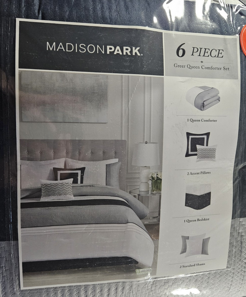 Madison Park 6 Piece Greer Queen Comforter Set - Black. Won this at a local government auction.