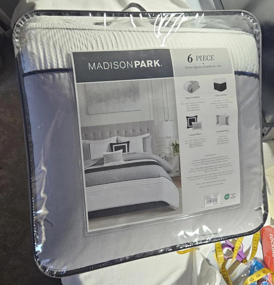 Madison Park 6 Piece Greer Queen Comforter Set - Black. Won this at a local government auction....