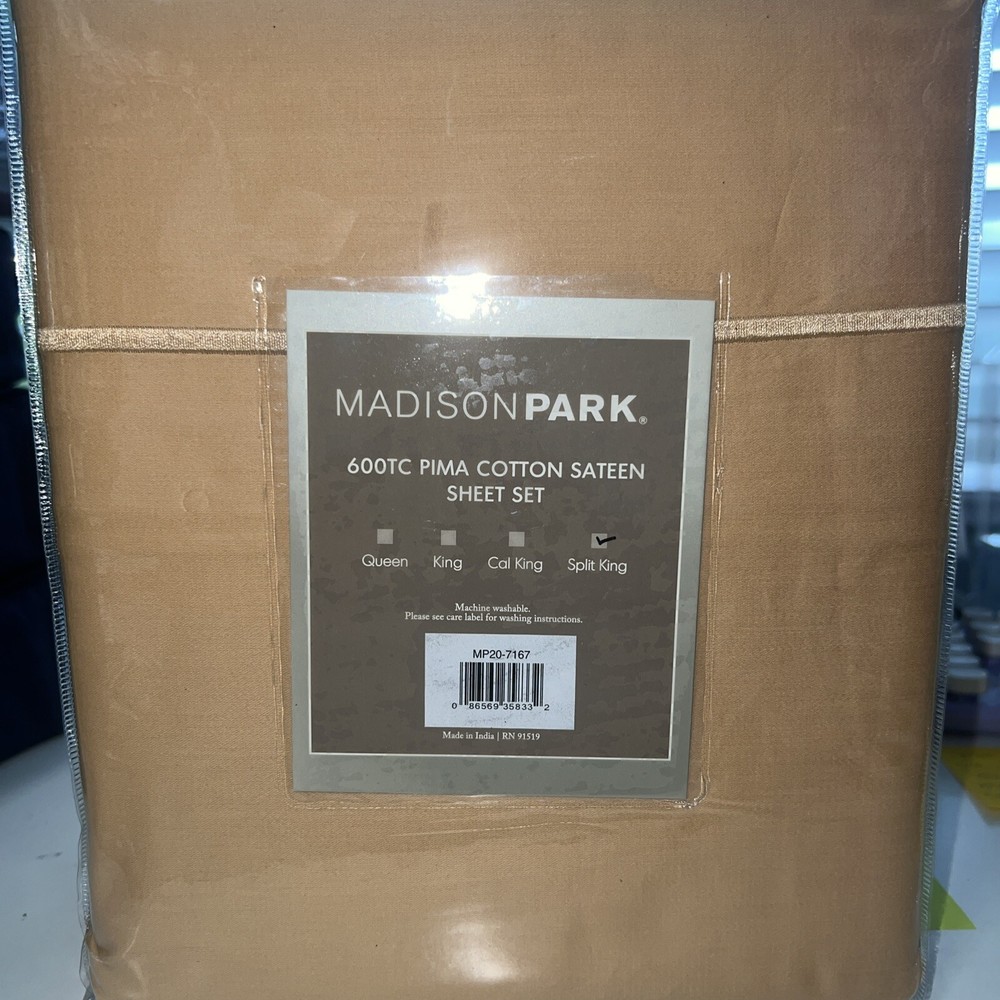 Pima cotton, one of softest cotton in the market, is used in Madison park 600 thread count pima cotton sateen sheet set. The extra long staple fiber cotton is relatively unlikely to cause an allergic reaction and durable, and gives the luxurious softness to the sheet set. Bed size - Split King Flat sheet dimension - 104" L x 110" W Pillowcases dimension - 40" L x 20" W Fitted sheets dimension - 80" L x 38" W + 15" D Set includes - 1 flat sheet, 4 pillowcases, 2 fitted sheets 600 thread count pima cotton sateen sheet set Extra long staple fiber of pima cotton is relatively unlikely to cause an allergic reaction Luxurious and soft for maximum comfort Fitted sheet fits up to a 17" mattress depth Asian American & Pacific Islander Owned, Woman Owned Pima Cotton Machine Washable Imported