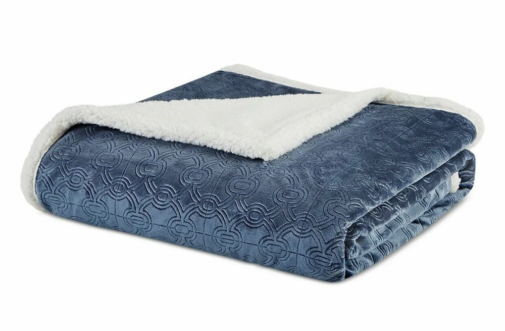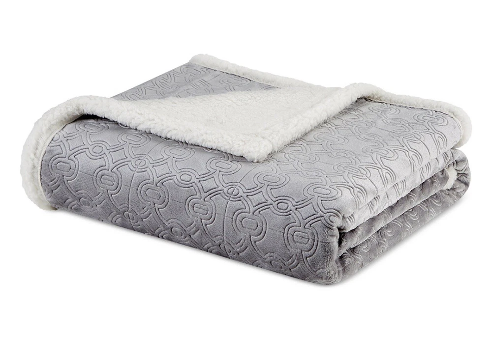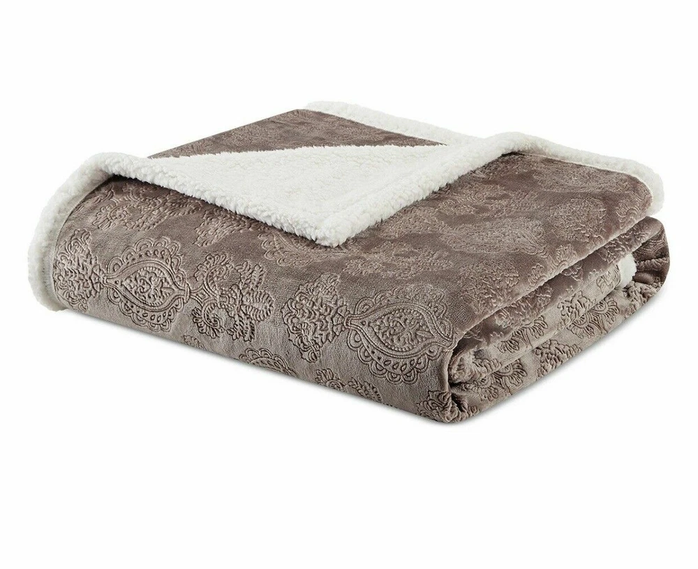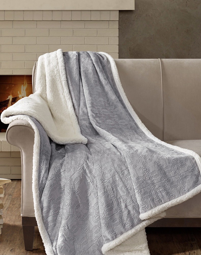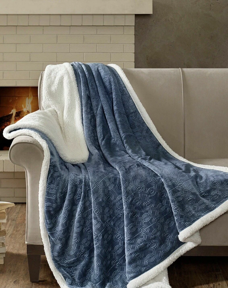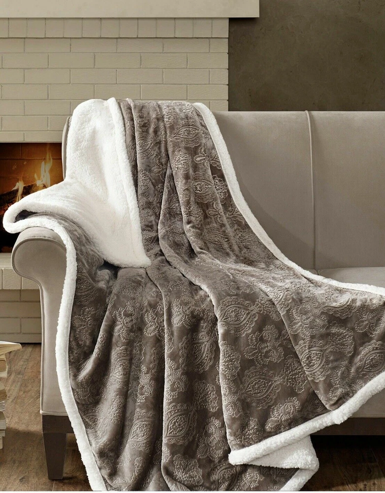 Madison Park, 60"x70" Embossed Velour Reversible Berber Throw (Choose Color) Surround yourself in luxurious style and warmth with this Elma oversized throw from Madison Park, featuring elegant 3D embossing on a soft velour ground and a cozy berber reverse. 3D etched embossed pattern Dimensions: 60" x 70" Oversized for added warmth and comfort Face: polyester Machine washable
