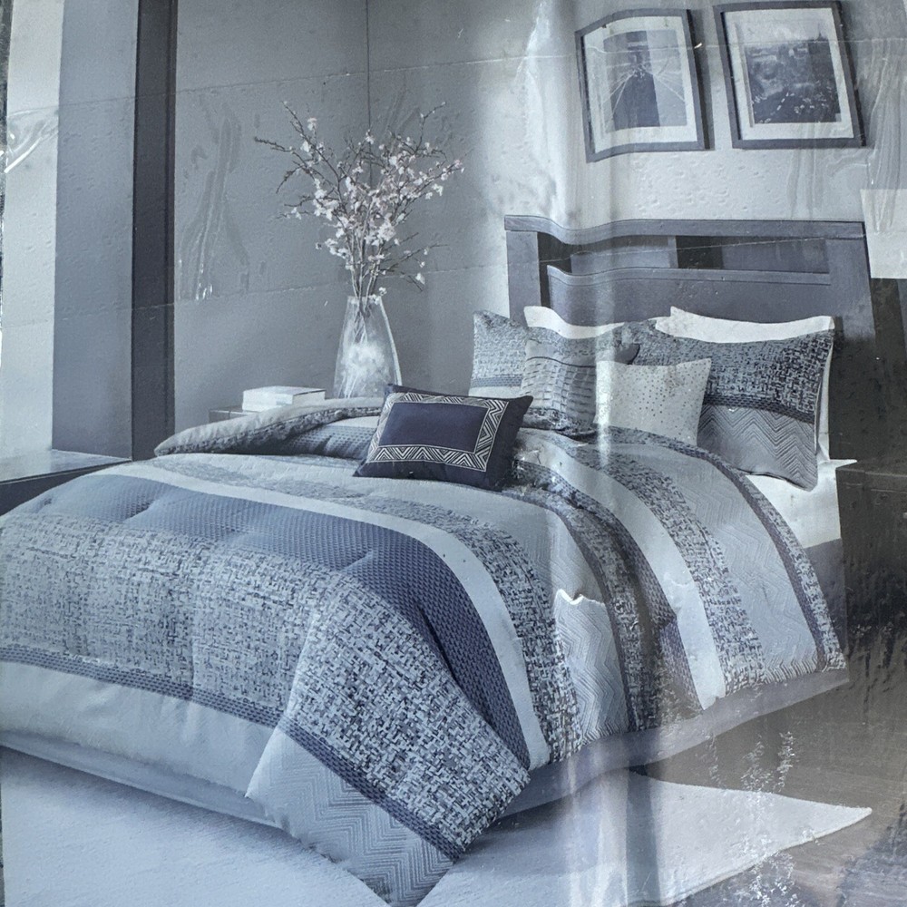 Transform your bedroom into a cozy haven with this Madison Park 7 Piece Comforter Set. The set includes one comforter, two matching shams, three decorative pillows, and a bed skirt, all in a beautiful tuffed design with embroidery details. The set is made of hypoallergenic polyester filling in the comforter and pillow, making it perfect for all seasons. Machine washable and steam iron for wrinkle removal, this contemporary set is perfect for teens, adults, and kids. The set is STANDARD 100 by OEKO-TEX certified, ensuring antimicrobial and breathable properties. The multicolor geometric pattern adds a touch of elegance to your bedroom, making it a perfect family theme.