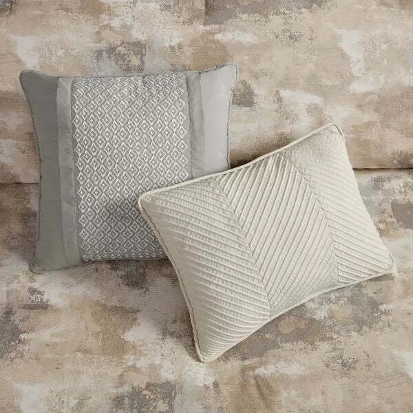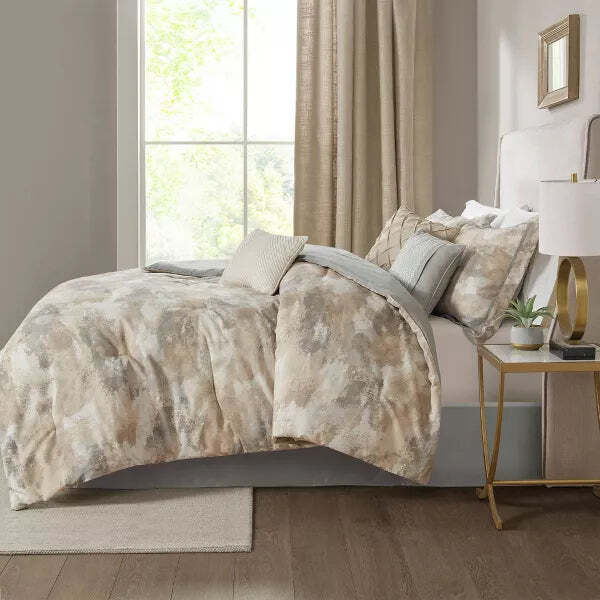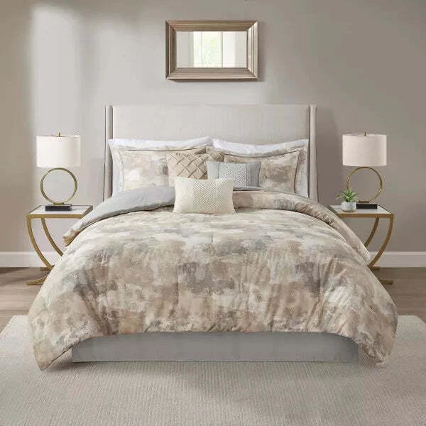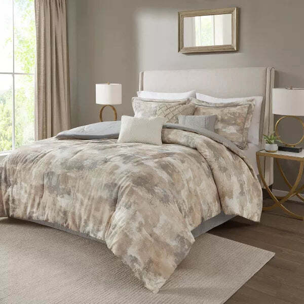 Madison Park 7 Piece Comforter Set Modernize your bedroom decor with the chic styling of the Madison Park Beacon 7 Piece Comforter Set. This luxurious comforter features an abstract print on the cotton-rich ottoman face with a solid grey reverse to create a glamorous look. The 2 matching shams mirror the abstract design of the comforter, while 3 coordinating decorative pillows with embroidered details add the finishing touches. A complementary solid grey bed skirt provides a clean finish to complete this modern comforter set. This bedding set is also OEKO-TEX certified, meaning it does not contain any harmful substances or chemicals to ensure quality comfort and wellness.. Features Luxury modern 7 piece comforter set; Abstract print on cotton rich ottoman fabric to create the glamorous look; Hypoallergenic polyester filling in the comforter and decorative pillow; Oeko-Tex Certified, includes no harmful substances or chemicals (# 18.HPK.48415); Machine washable for easy care; 7 Piece; Material: Printed 60%cotton, 40%polyester ottoman face, cotton/poly back comforter and shams, 8oz/sq yard polyester filling, cotton/poly bedskirt and pillows; Care Instruction:; Machine Washable Spot Clean Pillows; Set includes:; 1 comforter, 2 matching shams, 3 decorative pillows and 1 bed skirt; Specifications Color: Gray; Pattern Name: Beacon; Primary Life Style: Modern/Contemporary; Material/Fabrication: Printed 60%cotton, 40%polyester ottoman face, cotton/poly back comforter and shams, 8oz/sq yard polyester filling, cotton/poly bedskirt and pillows; Queen 1 Comforter: 90W x 90L; 2 Standard Shams: 20W x 26L + 2D (2); 1 Bed Skirt: 60W x 80L + 15D; 3 Decorative Pillows: 18W x 18L/12W x 18L/16W x 16L; Country of Origin: Pakistan; Oversize: No; Overgirth: No; Girth: 86; Division: Adult/Fashion Bedding; Weight: 11.01 lbs; . Box B67 (California King/Grey-1) Box D28 (King/ Grey-1) Listed: Martha Russel Due to variances in monitor color, and lighting, the color of some items may differ slightly from the photographs About us: Vanessa Jane is a family-owned business based in Indiana. We sell only authentic merchandise from brand new to used, and list new inventory daily. Make sure to put us on your favorites to see what's new each day! We source all of our inventory from reputable sales channels, including: Macy's Amazon Walmart Home Depot Office Depot Lowes Build.com And many more Listing SKU: VJ7015502282837 Box B67 California King/Grey Box D28 (King/ Grey) Box B67 (Queen/ Grey-1) Modernize your bedroom decor with the chic styling of the Madison Park Beacon 7 Piece Comforter Set. This luxurious comforter features an abstract print on the cotton-rich ottoman face with a solid grey reverse to create a glamorous look. The 2 matching shams mirror the abstract design of the comforter, while 3 coordinating decorative pillows with embroidered details add the finishing touches. A complementary solid grey bed skirt provides a clean finish to complete this modern comforter set. This bedding set is also OEKO-TEX certified, meaning it does not contain any harmful substances or chemicals to ensure quality comfort and wellness.. Features Luxury modern 7 piece comforter set; Abstract print on cotton rich ottoman fabric to create the glamorous look; Hypoallergenic polyester filling in the comforter and decorative pillow; Oeko-Tex Certified, includes no harmful substances or chemicals (# 18.HPK.48415); Machine washable for easy care; 7 Piece; Material: Printed 60%cotton, 40%polyester ottoman face, cotton/poly back comforter and shams, 8oz/sq yard polyester filling, cotton/poly bedskirt and pillows; Care Instruction:; Machine Washable Spot Clean Pillows; Set includes:; 1 comforter, 2 matching shams, 3 decorative pillows and 1 bed skirt; Specifications Color: Gray; Pattern Name: Beacon; Primary Life Style: Modern/Contemporary; Material/Fabrication: Printed 60%cotton, 40%polyester ottoman face, cotton/poly back comforter and shams, 8oz/sq yard polyester filling, cotton/poly bedskirt and pillows; Queen 1 Comforter: 90W x 90L; 2 Standard Shams: 20W x 26L + 2D (2); 1 Bed Skirt: 60W x 80L + 15D; 3 Decorative Pillows: 18W x 18L/12W x 18L/16W x 16L; Country of Origin: Pakistan; Oversize: No; Overgirth: No; Girth: 86; Division: Adult/Fashion Bedding; Weight: 11.01 lbs; . Box B67 (California King/Grey-1) Box D28 (King/ Grey-1) Listed: Martha Russel Due to variances in monitor color, and lighting, the color of some items may differ slightly from the photographs About us: Vanessa Jane is a family-owned business based in Indiana. We sell only authentic merchandise from brand new to uséd, and list new inventory daily. Make sure to put us on your favorites to see what's new each day! We source all of our inventory from reputable sales channels, including: Macy's Amazon Walmart Home Depot Office Depot Lowes Build.com And many more Listing SKU: VJ7015502282837 Box B67 California King/Grey Box D28 (King/ Grey) Box B67 (Queen/ Grey-1) eBay integration by