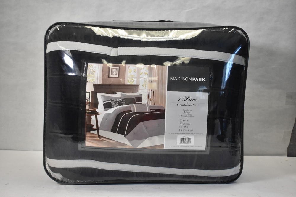 Madison Park 7 Piece Queen Size Comforter Set Bedding Black Finish MP10-423 7 piece queen comforter set Why Shop with US? Customer Service is our #1 Priority Excellent Pricing Excellent Feedback Quality Assurance Fast Shipping Feedback If you are completely satisfied with your purchase please leave us positive feedback. If there is an issue with your order, please understand we are human and we do make mistakes. Please send us a message and give us a chance to resolve before returning or opening a dispute with eBay. Shipping Policy We will ship almost all items within 1 business day. All items ship from Kansas City MO and take 2-5 days depending on shipping service. On rare occasion, USPS or FedEx may delay a package. Please understand this is out of our control. If you order/pay before 12 PM CST we will try our best to get your package out same day. If you would like an express delivery option, please message us before purchasing, we can update the listing to reflect an express option. (Additional Shipping charges will apply) Disclaimer BI-STATE Deals is not sponsored by or affiliated with the brands associated with the products being sold. Furthermore, there is no guarantee or assumption that we can provide support or offer any warranty on this product after purchase. Bi-State Deals Copyright © Bi-State Deals