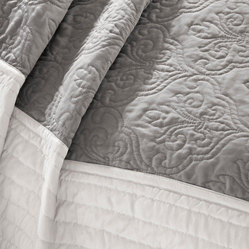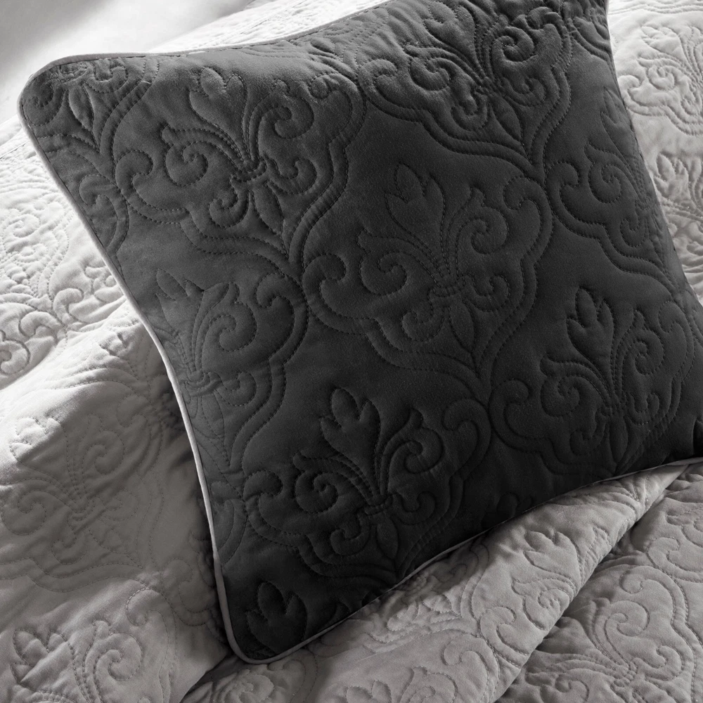 Store Categories Store Categories Bedding Comforters Decorative Pillows Duvet Covers Quilts & Coverlets Sheets Blankets & Throws Mattress Pads Pillows Home Decor Window Treatments Wall Art Home Accents Furniture Beds Dining Seating Ottomans & Benches Accent Chairs Accent Tables Dining Tables Sofas Bath Bath Robes Shower Curtains Towels Bath Rugs Bath Accessories Apparel Pajama Sets Nightgowns Rugs Rugs & Carpets Lighting Lamp Pendant Other Product Overview Details DESCRIPTION The Attingham 7 Piece Reversible quilt set is set in a black, ivory and grey, all working together to create this beautiful neutral colorway. The black and grey portions of the quilt have an intricate woven design that add dimension to this quilt. Made from 100% polyester, this quilt will keep be easy to care for and keep you cozy all year round. FEATURES • Traditional style 7 piece reversible quilt set • Medallion pattern quilting all over quilt with solid color border • Available in two colorways: The Beige is in a chocolate brown, ivory and taupe; The Black is in a black, ivory and gray • Set includes 1 quilt, 2 euro shams, 2 matching shams and 2 decorative pillows • Machine washable for easy care MATERIAL Quilt/Sham: Polyester Microfiber, pieced, brushed polyester reverse, 90% cotton, 10% other fiber filling, all over quilted, self fabric binding, prewash finish Euro Sham: 100% Polyester Pillow: 100% Polyester cover, Polyester filling Available Sizes: Full/Queen Quilt Set Includes: 1 Quilt: 90"W x 90"L 2 Standard Shams: 20"W x 26"L + 2"D 2 Euro Shams: 26"W x 26"L + 2"D 1 Decorative Pillow: 16"W x 16"L 1 Decorative Pillow: 12"W x 18"L King/California King Quilt Set Includes: 1 Quilt: 104"W x 94"L 2 King Shams: 20"W x 36"L + 2"D 2 Euro Shams: 26"W x 26"L + 2"D 1 Decorative Pillow: 16"W x 16"L 1 Decorative Pillow: 12"W x 18"L Bedding Comforters Decorative Pillows Duvet Covers Quilts & Coverlets Sheets Blankets & Throws Mattress Pads Pillows Home Decor Window Treatments Wall Art Home Accents Furniture Beds Dining Seating Ottomans & Benches Accent Chairs Accent Tables Dining Tables Sofas Bath Bath Robes Shower Curtains Towels Bath Rugs Bath Accessories Rugs Rugs & Carpets Lighting Lamp Pendant Product Overview Product Details DESCRIPTION The Attingham 7 Piece Reversible quilt set is set in a black, ivory and grey, all working together to create this beautiful neutral colorway. The black and grey portions of the quilt have an intricate woven design that add dimension to this quilt. Made from 100% polyester, this quilt will keep be easy to care for and keep you cozy all year round. FEATURES • Traditional style 7 piece reversible quilt set • Medallion pattern quilting all over quilt with solid color border • Available in two colorways: The Beige is in a chocolate brown, ivory and taupe; The Black is in a black, ivory and gray • Set includes 1 quilt, 2 euro shams, 2 matching shams and 2 decorative pillows • Machine washable for easy care MATERIAL Quilt/Sham: Polyester Microfiber, pieced, brushed polyester reverse, 90% cotton, 10% other fiber filling, all over quilted, self fabric binding, prewash finish Euro Sham: 100% Polyester Pillow: 100% Polyester cover, Polyester filling Available Sizes: Full/Queen Quilt Set Includes: 1 Quilt: 90"W x 90"L 2 Standard Shams: 20"W x 26"L + 2"D 2 Euro Shams: 26"W x 26"L + 2"D 1 Decorative Pillow: 16"W x 16"L 1 Decorative Pillow: 12"W x 18"L King/California King Quilt Set Includes: 1 Quilt: 104"W x 94"L 2 King Shams: 20"W x 36"L + 2"D 2 Euro Shams: 26"W x 26"L + 2"D 1 Decorative Pillow: 16"W x 16"L 1 Decorative Pillow: 12"W x 18"L