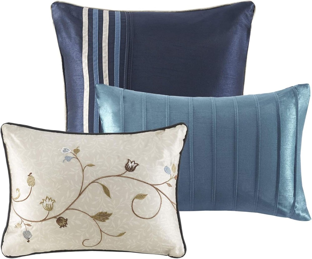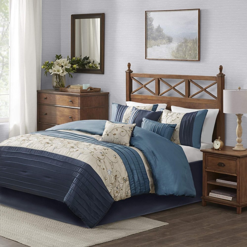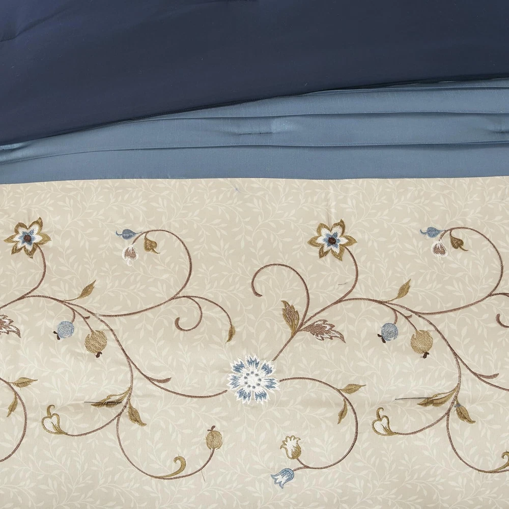 Madison Park 7 Piece Serene Faux Silk Embroidered Floral Comforter Set, Queen. New, Open Box Item. Free Shipping.