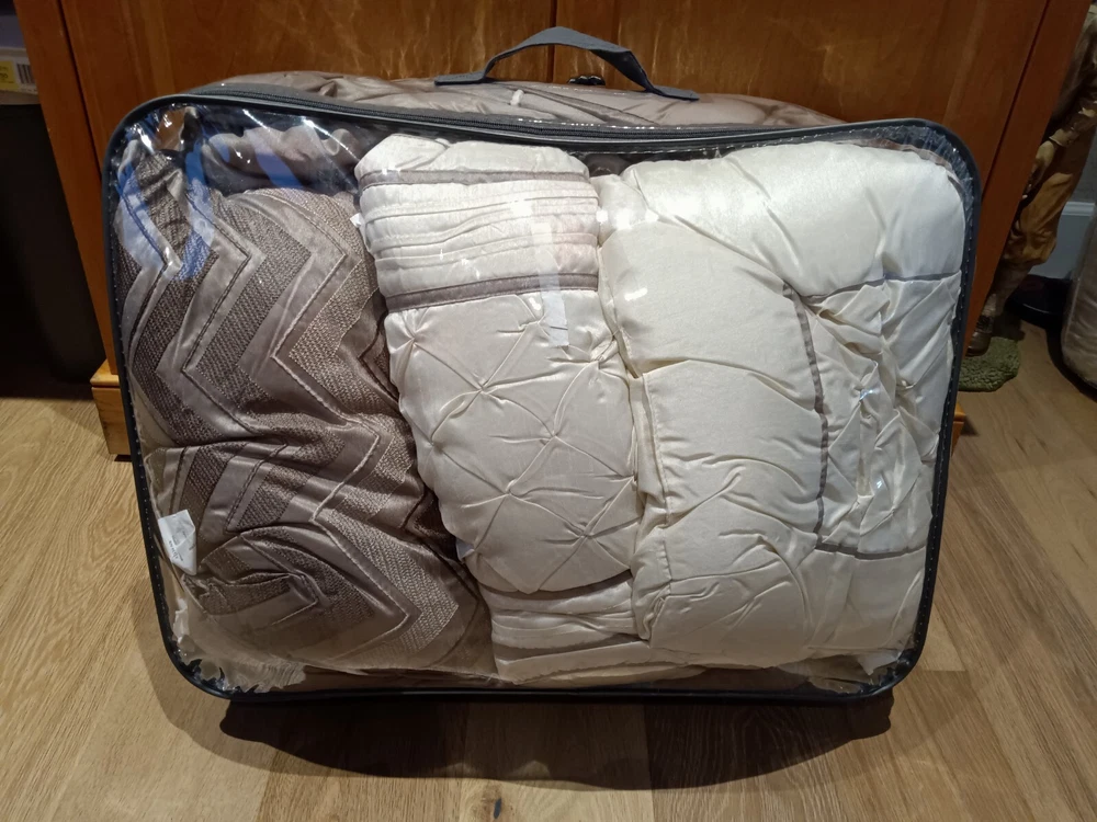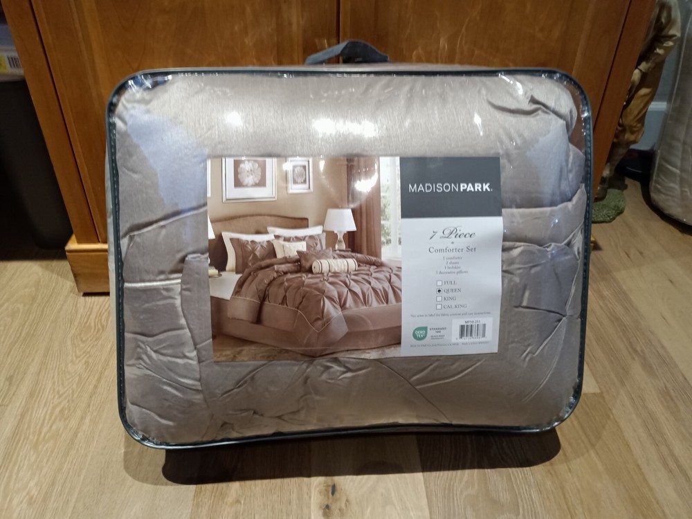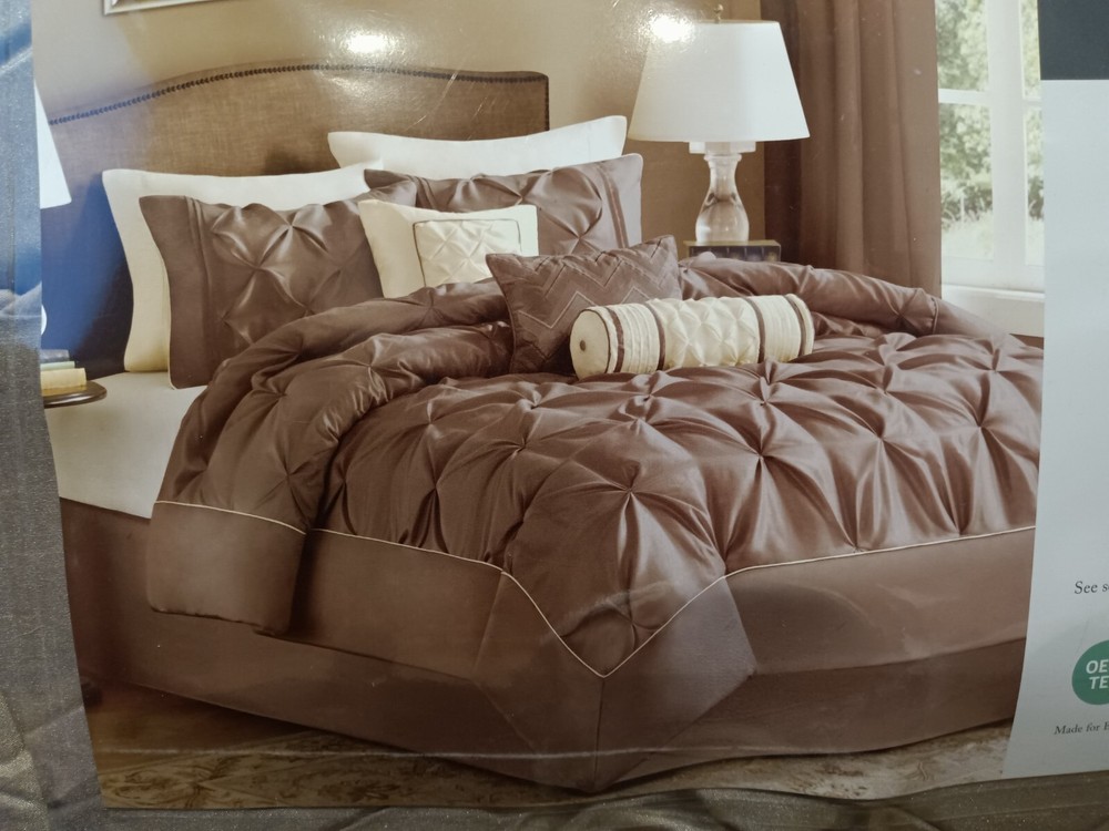 * Item Condition - New (with original package). Some light marks on the exterior of package, but the set is in new condition and never owned. * Retail - $260 The Wilma comforter set from Madison Park features the comfort of polyester polyoni with a classic pleated design, making it a distinguished addition to any room. Product Features Set includes: comforter (90" x 90"), bed skirt (60" x 80" + 15"), two standard shams (20" x 26") and three decorative pillows (18" x 18", 12" x 18", 6.5" x 18") Pleated designs Comforter: polyester; polyester fill Sham: polyester Bed skirt: polyester Pillow: polyester cover; polyester fill Asian American & Pacific Islander Owned, Woman Owned Polyester Machine washable Imported * My work environment is immaculately clean. There are no pets in my work area nor anything that can damage the item you purchased. I will never ship anything damaged, dirty or with foreign smells without mentioning it in that particular listing with a discount. The bed shown in some photo's is used as a model only. It's always precleaned. *** Return Policy My simple return policy. There will be no questions asked if you choose to return any item you purchase within 30 days. Items must be returned in the same condition you received it to be eligible for a full refund. The buyer pays for return shipping with a 15% restocking fee. Thank you *** SHIPPING I will always ship out within one business day and sometimes the same day if I have enough time. Expect one business day and also expect Friday purchases to go out Monday. Sometimes I might switch shipping at the last minute between USPS and Fedex or visa versa. * Feedback - If you feel the transaction went well then I would appreciate a positive feedback. You can expect the same from me. Thank you