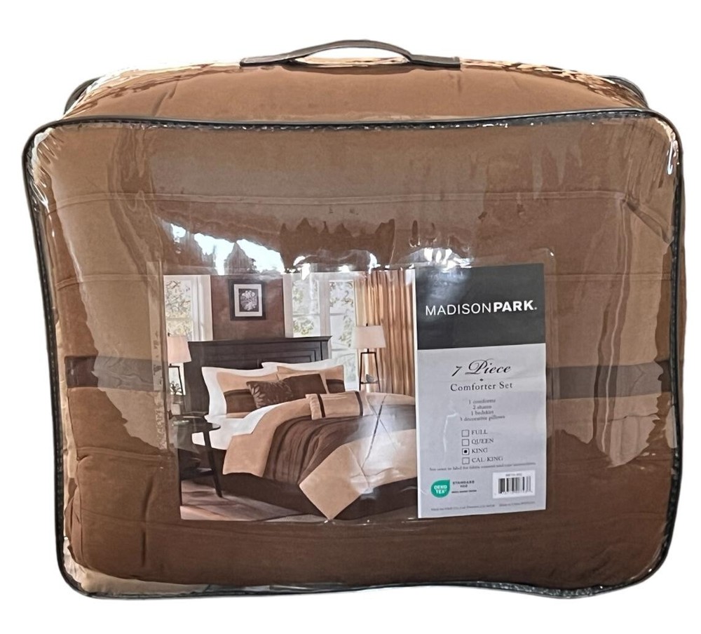 Madison Park King set includes: 1 comforter (104" x 92"), 2 king shams (20" x 36"), 1 bed skirt (78" x 80 + 15"), 3 decorative pillows (18" x 18"/12" x 20"/16" x 16") For comfort and a chic design, the Home Essence Dakota 7-Piece Microsuede Comforter Set is the perfect fit. Its comforter is made from pieced microsuede for a soft feel while the piecing details add texture. Each set includes a comforter, two shams, a bed skirt and three decorative pillows. The neutral tones of the Home Essence Dakota 7-Piece Microsuede Comforter Set will be aesthetically pleasing and fit right in almost any decor. 100% Same as the Picture! 100% Satisfaction Guarantee. If for any reason you not satisfied with our product, you may return any un-opened merchandise (except Skincare, and Makeup items due to health reasons ) in its original condition, including original packaging and packing slip within 7 days of receipt and you will receive a refund less shipping charges. 15% restocking fee will apply. Shipping cost is non-refundable for undelivered, unclaimed or returned packages, unless we made an error. *********************************************** Payment must be received within seven (7) days of auction close. Unpaid auction wins will be forfeited after seven (7) days and a Non-Payer report will be filed with eBay to recover the closing fees of the auction. If you wish to combine multiple auctions for shipping, please make sure the closing dates from the first auction to the last auction are within seven (7) days Sellers are not responsible for service transit time. Transit times are provided by the carrier, exclude weekends and holidays, and may vary with package origin and destination, particularly during peak periods. ******************************************************************************************* PLEASE CONTACT ME FIRST IF YOU ARE NOT SATISFIED WITH YOUR PURCHASE. I WILL BE HAPPY TO SOLVE ANY PROBLEM. CUSTOMER SATISFACTION IS MY NUMBER ONE PRIORITY. ************************************** PLEASE GIVE US THE OPPORTUNITY TO SERVE YOU !!!