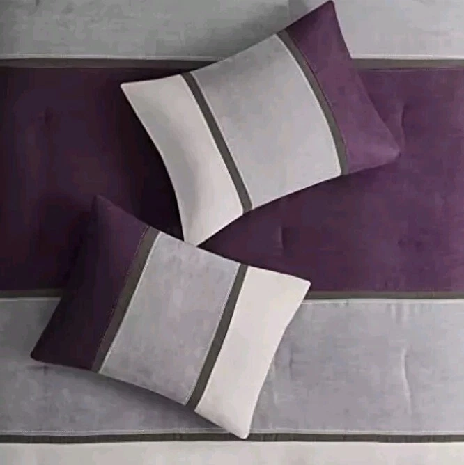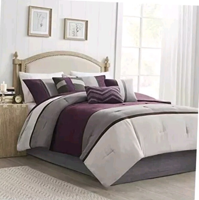 Elevate your bedroom decor with this stylish Madison Park 7pc Comforter Set in a beautiful shade of purple. The set includes one comforter, two standard shams, one bedskirt, and three decorative pillows, all made from 100% faux suede material. The solid pattern and modern stripe theme make it a perfect fit for any season and room in your home. This unisex-adult comforter set is designed for maximum comfort and style. The product dimensions are 90 x 90 x 1.5 inches, and it weighs 13.22 pounds. The set is easy to assemble and requires no batteries. It is machine washable and spot cleanable for easy maintenance. The customer reviews are 4.4 out of 5 stars, and the product model number is MP10-6175. Add this Madison Park comforter set to your collection today and enjoy the ultimate comfort and style in your bedroom.