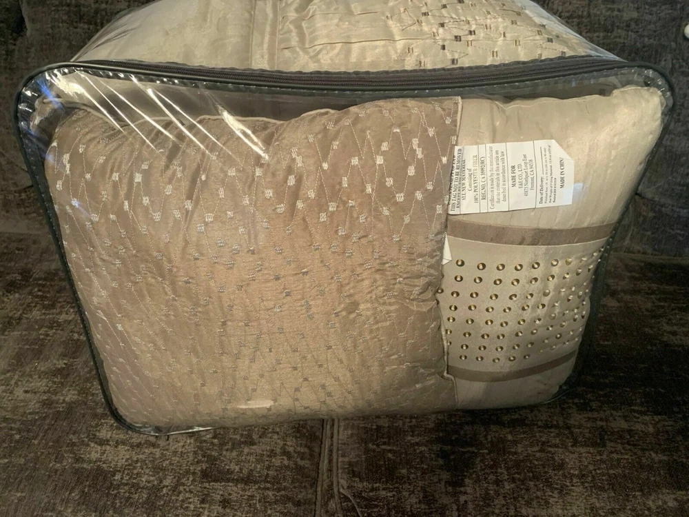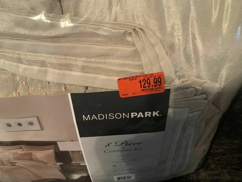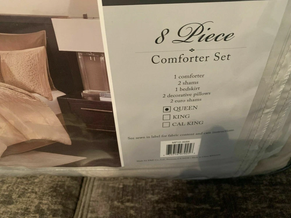 Madison Park Camelia 8 Piece Embroidered Comforter Set MP10-4688 By Olliix Update your bedroom with the Madison Park Camelia 8 Piece Embroidered Comforter Set. The faux silk pieced comforter and shams flaunt a geometric embroidery design that adds charm and texture to the top of the bed. Two polyoni Euro shams provide a rich color to the bedding set, while a coordinating bed skirt offers a clean and crisp finish. Decorative pillows feature embroidered details that help complete the ensemble. SKU: MP10-4688 Manufacturer: Olliix Division: Adult/Fashion Bedding Brand: Madison Park Pattern: Camelia Category: Comforter (Set) Finish: Natural Material: Polyester faux silk, pieced, 8oz/sq yard polyester filling, bedskirt with 15"drop Size: Queen UPC Code: 675717000000 Care Instructions: Machine Washable, Spot Clean Pillows Net Weight: 11.44 Carton Dimensions: 23.62L x 20.08W x 15.7H Inches, Wt: 13.83lbs Features: 1 Comforter:90W X 90L, 2 Standard Shams:20W X 26L + 1D (2), 1 Bedskirt:60W X 80L + 15D, 2 Decorative Pillows:18W X 18L/12W X 18L, 2 Euro Shams:26W X 26L + 0.5D (2) Polyester Faux Silk, Pieced, 8oz/Sq Yard Polyester Filling, Bedskirt With 15Drop