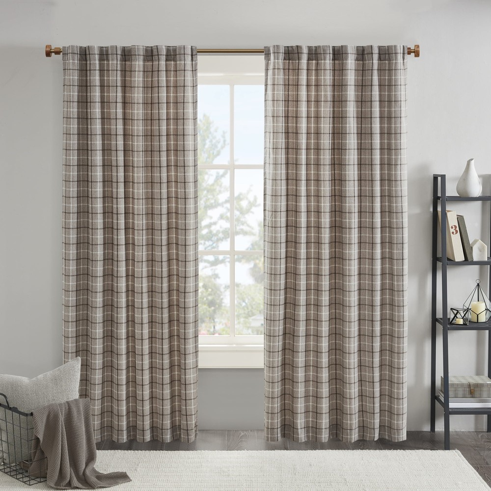 Madison Park Plaid Rod Pocket and Back Tab Panel with Fleece Lining: 1 Window Panel Available Size: 50"W x 95"L 100% Polyester Rod Pocket And Back Tab Yarn Dyed Plaid Weave Window Curtain Panels Heavy Weight And Warm Quality Base Fabric For Cold Weather Curtains Added Unique Fleece Lining For Thermal Insulation, Keeping Warmth In During Winter And Heat Out During Summer Light Filtering Panel With Privacy Sold Individually Need To Purchase Two Panels For Each Window Energy Efficient Level: Room Darkening Liner Color: White Bottom Hem Length: 3" Side Hem Width: 1" Fits Up To 1.25 Inches In Rod Diameter Machine Washable For Easy Care