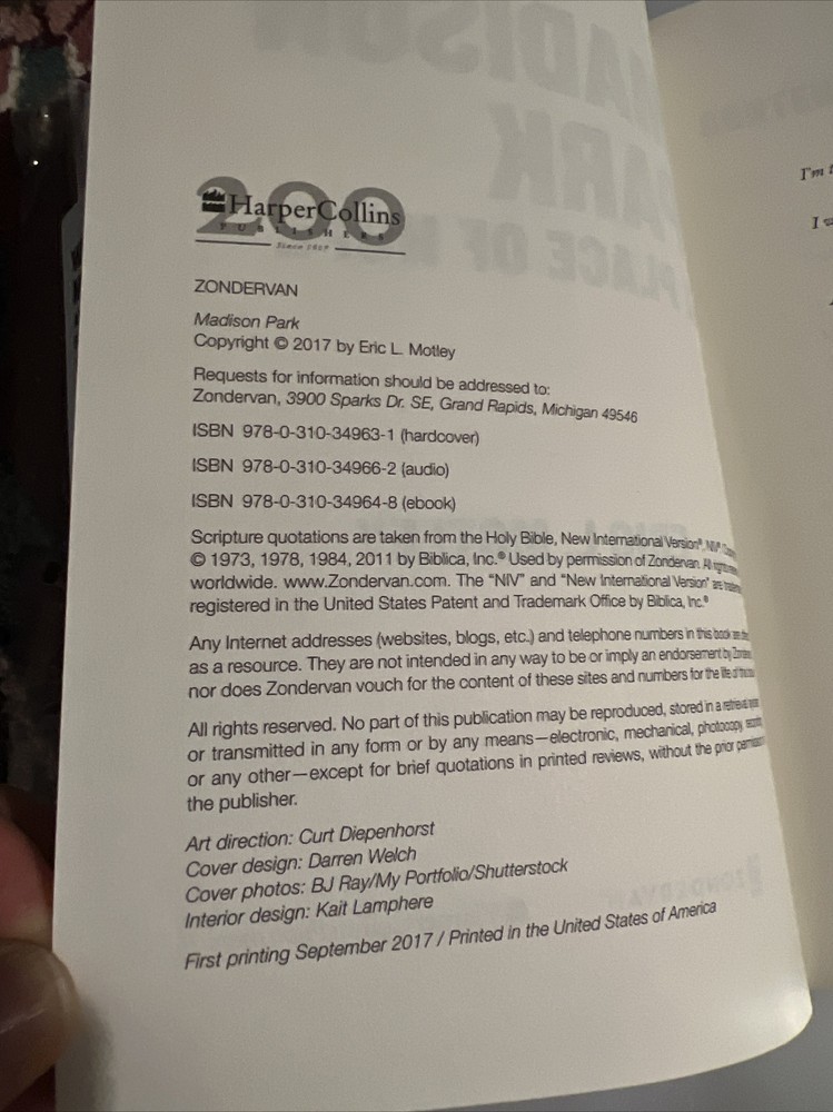 Madison Park A Place of Hope by Eric L Lamar Motley 2017 Hardcover