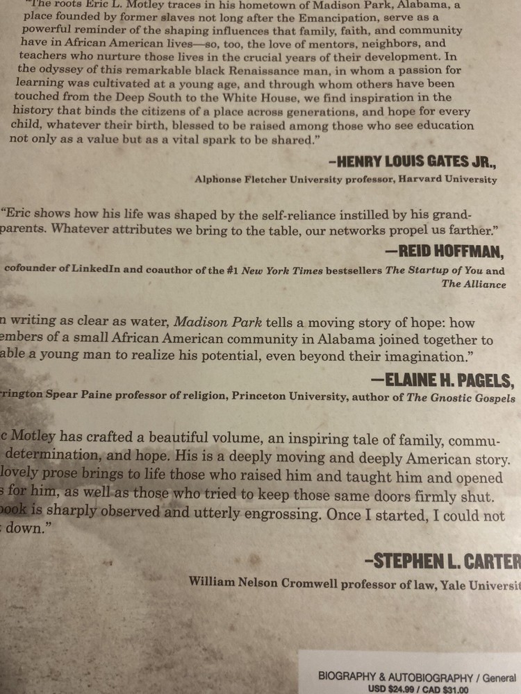 Madison Park A place of hope by Eric L Motley. Condition is Brand Newan autobiography . Shipped with USPS Media Mail.