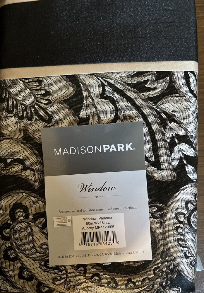 Add a touch of elegance to your windows with this Madison Park AUBREY Straight Jacquard Window Valance in classic black. Measuring 50" x 18", this wall-mounted valance features a rod pocket curtain heading and light filtering transparency, perfect for any room in your home. The jacquard material adds a smooth and durable finish, while the aubrey pattern adds a stylish touch to your window treatments. This unit quantity includes one straight valance, and is designed for easy installation and maintenance. Upgrade your home decor with this beautiful window valance from Madison Park.